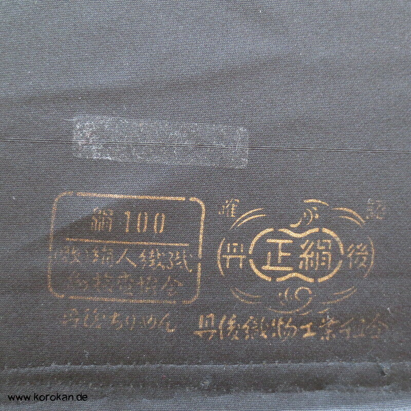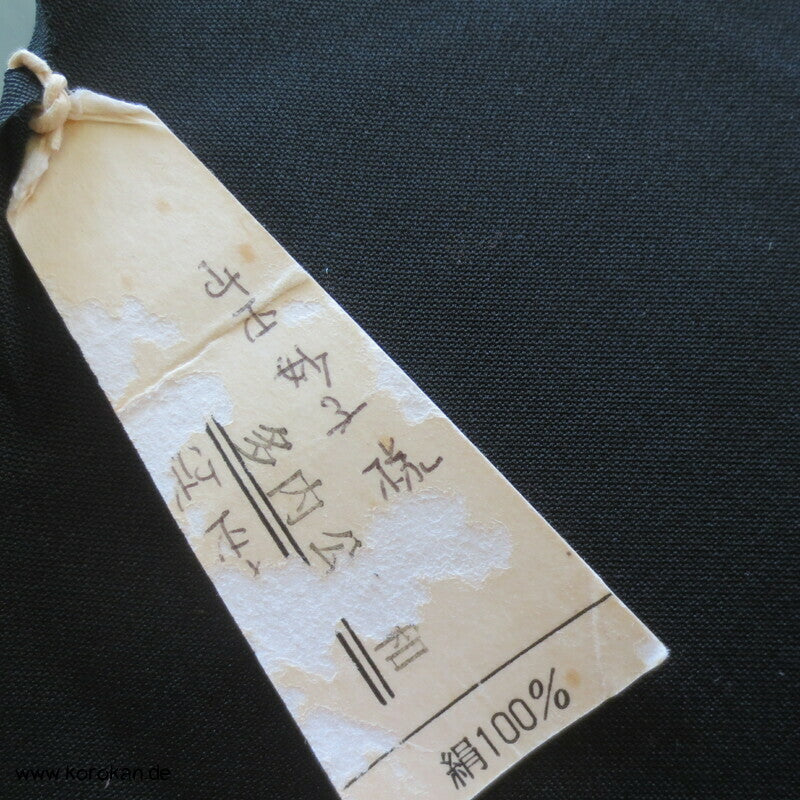 Kusudama, schwarzer Seidencrepe Haori Kimono Tanmono Stoffrolle