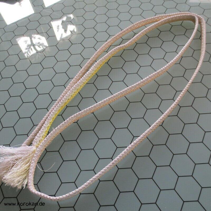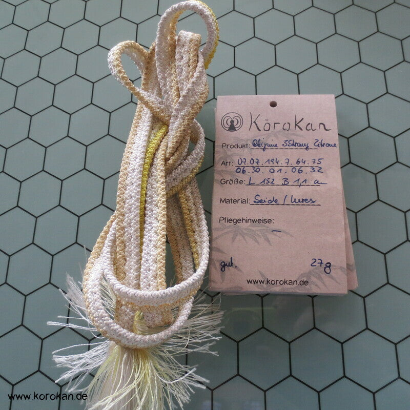 Vintage flacher Obijime gelbweiß gold 3 Kordeln Obijime, Seide / Lurex, zusammengenäht
