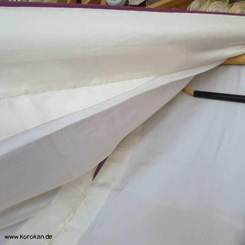 Oberes Futter helle Seide, unteres Futter aus dem Obermaterial am Beleg noch mit Motiv. Doppelte Belege am Ärmel