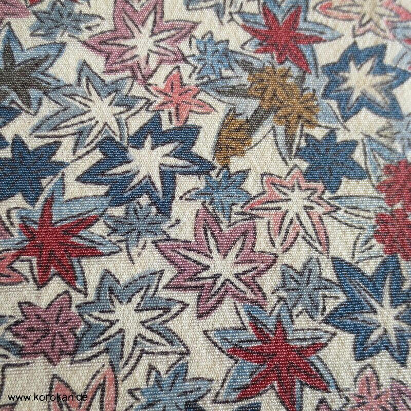 Vintage Crepe Seide Araihari eines aufgetrennten Kimonos, lauter kleine Ahornblätter auf naturfarbener Seide.