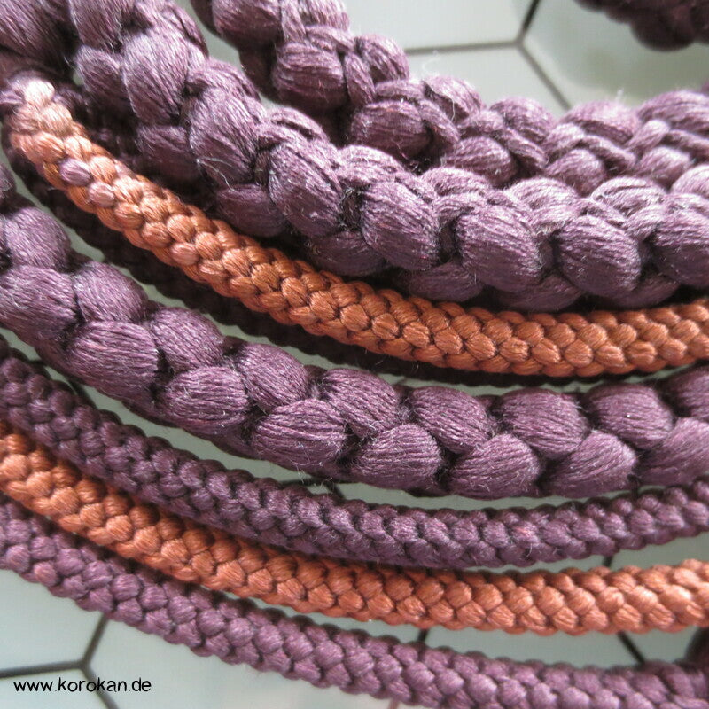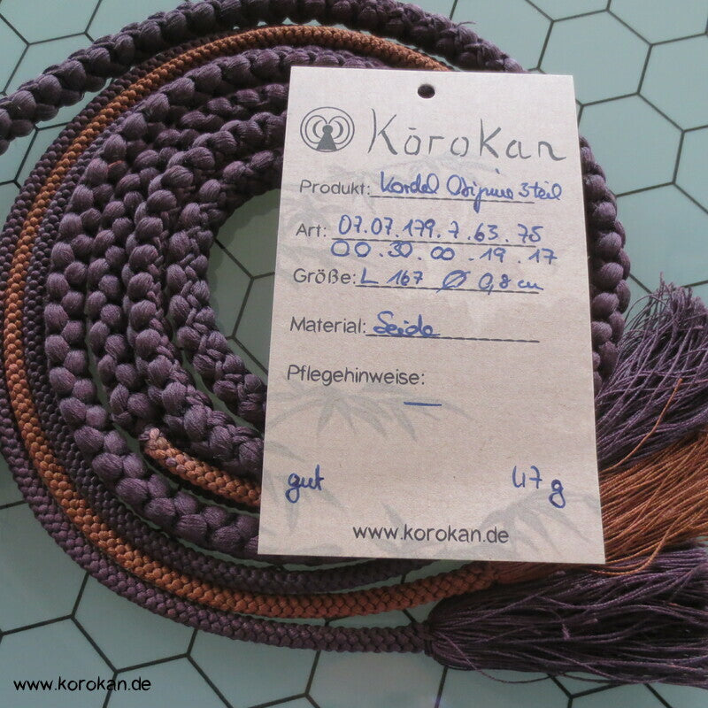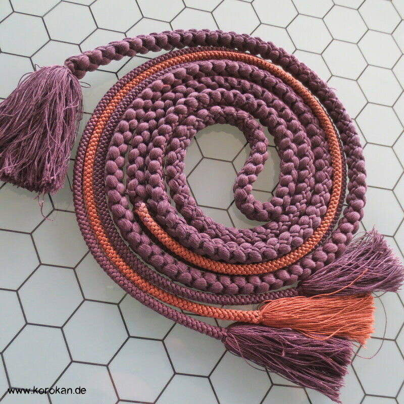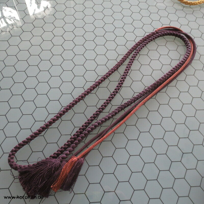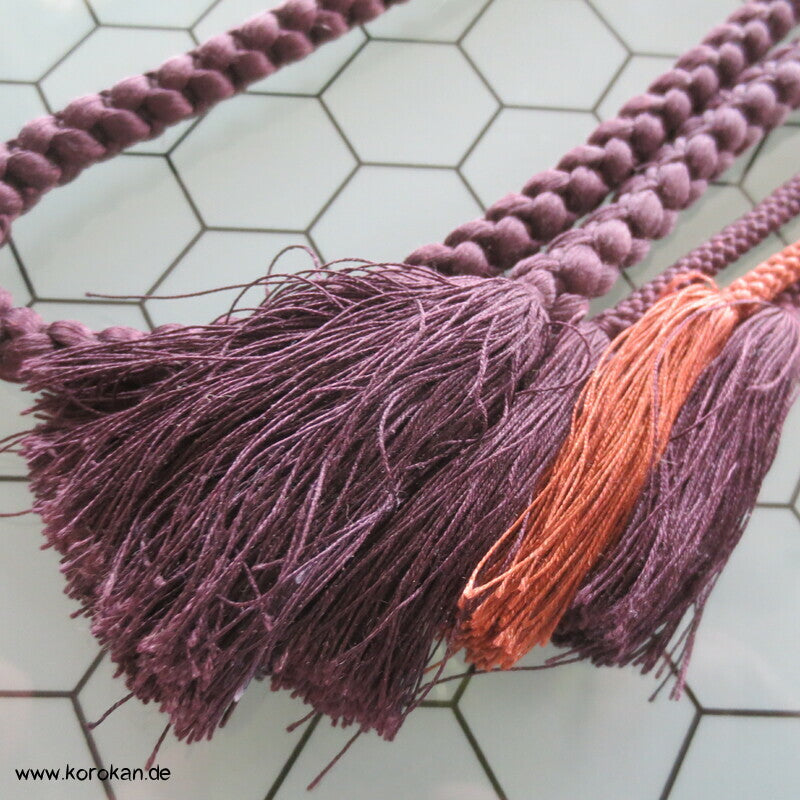 aubergine - umbra Kordel Obijime, Seide, eine Seite dreigeteilt