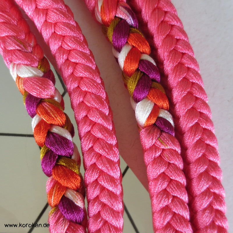 Vintage Seiden Kordel Obijime, azalee mit buntem Farbverlauf, Rechteck Querschnitt, ohne Troddeln