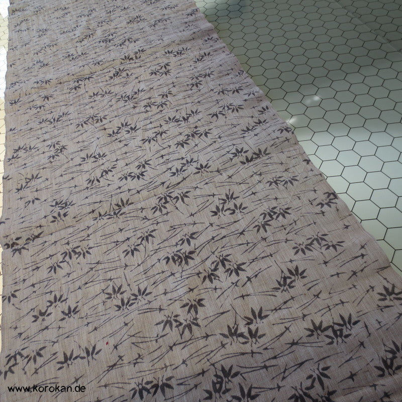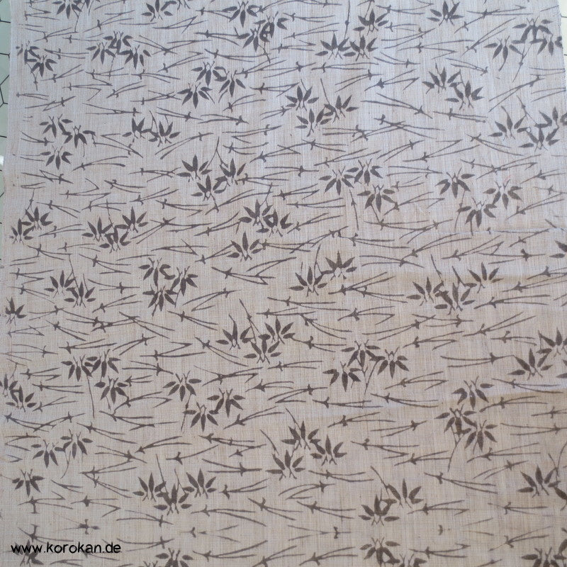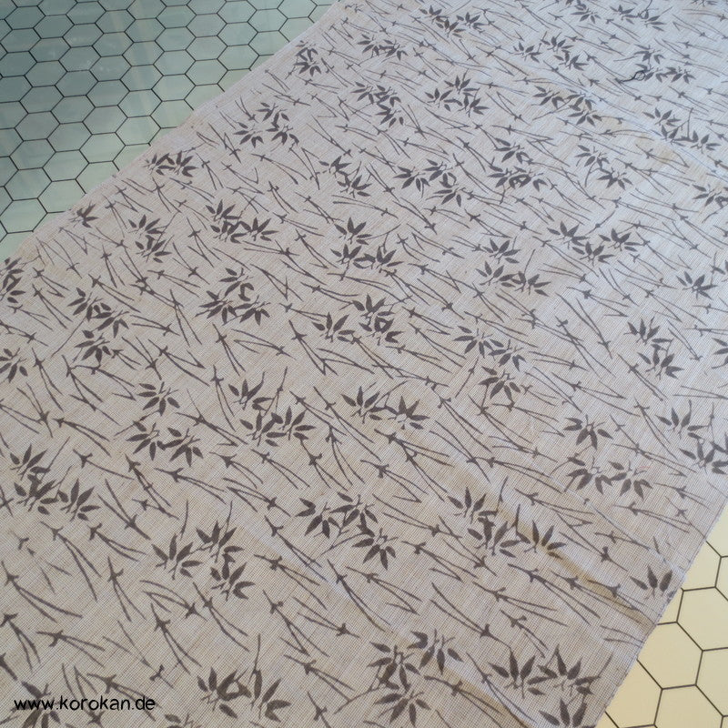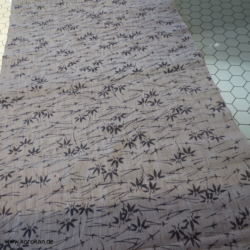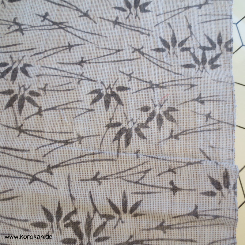 Vintage unbenutzter Yukatakrepp für Sommerkimono graue Kiefernnadeln und Bambus auf kiesel