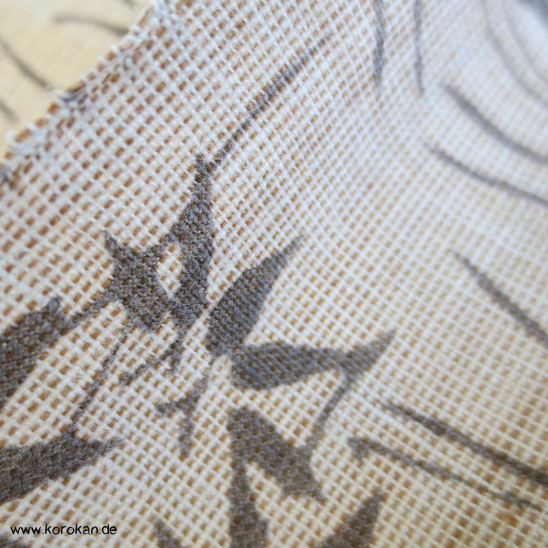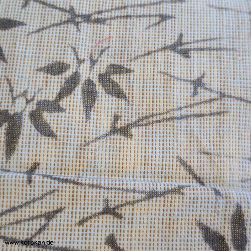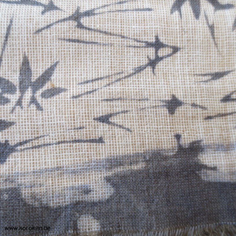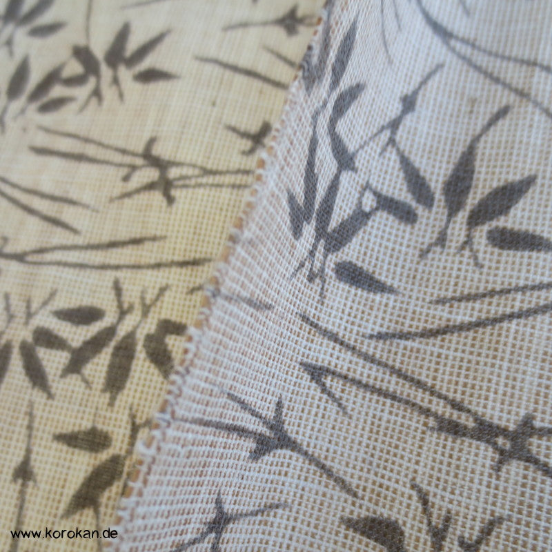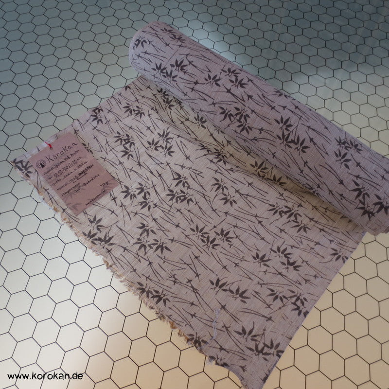 Vintage unbenutzter Yukatakrepp für Sommerkimono graue Kiefernnadeln und Bambus auf kiesel