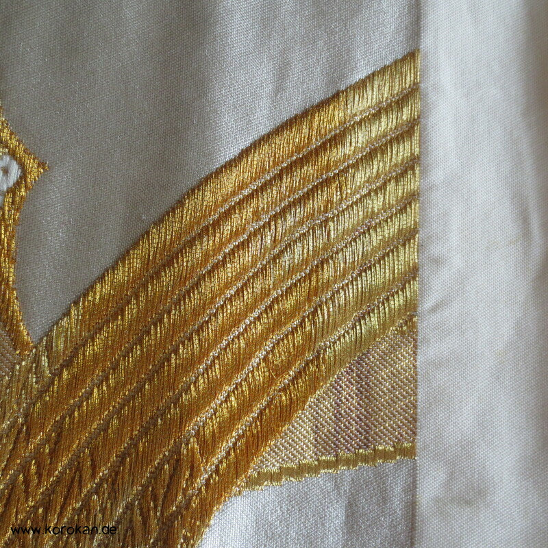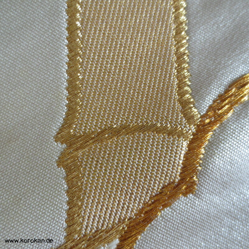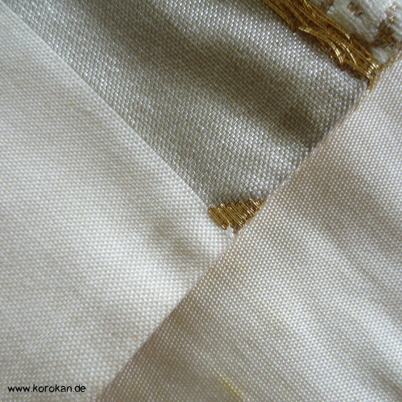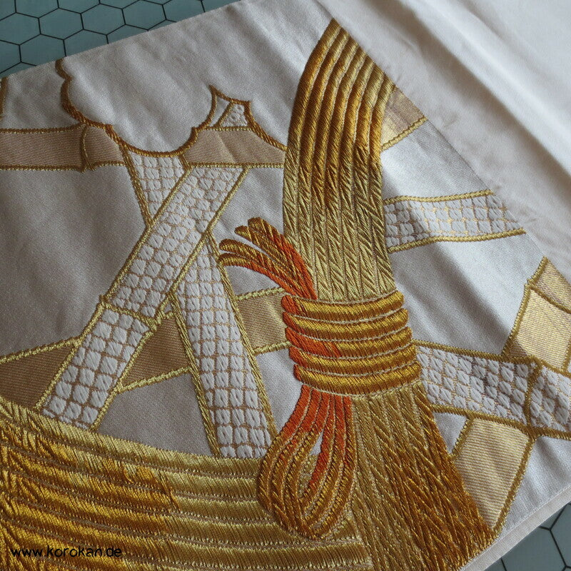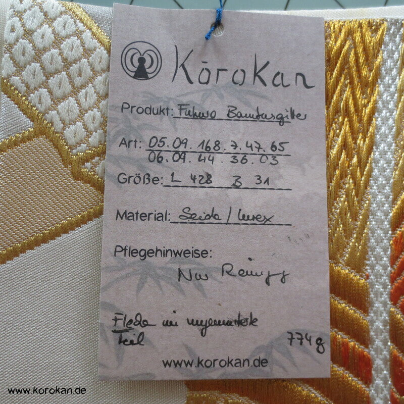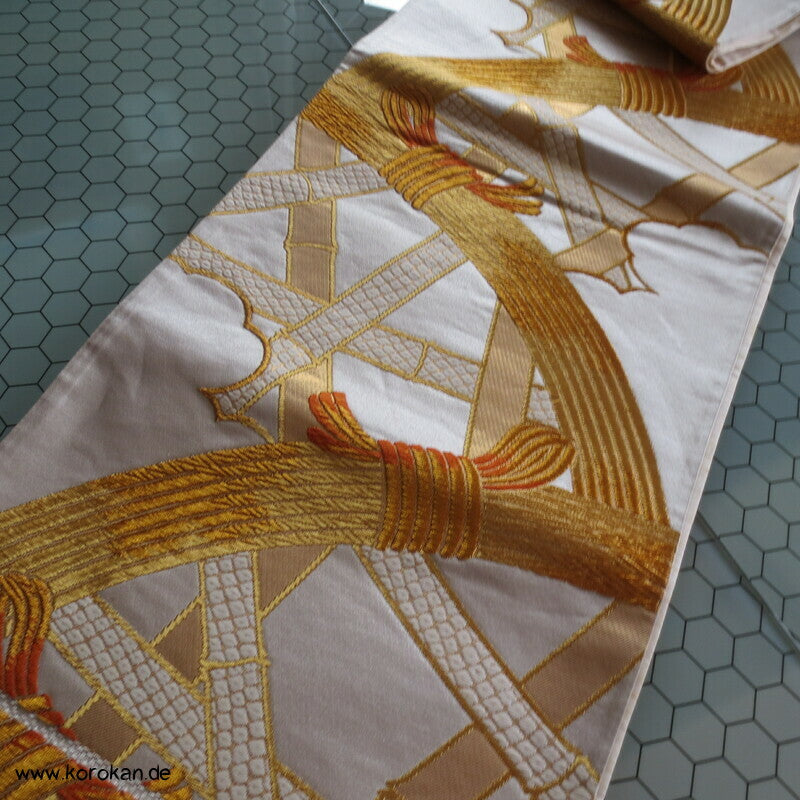Bambusgeflecht Seiden Brokat Fukuro Obi, goldener Kimonogürtel
