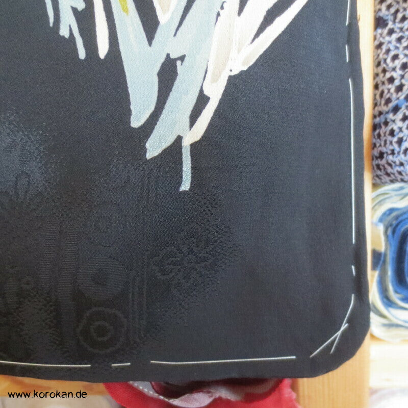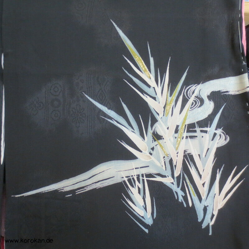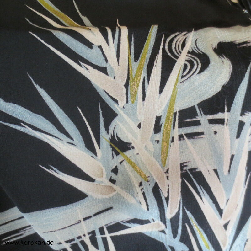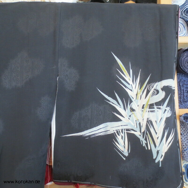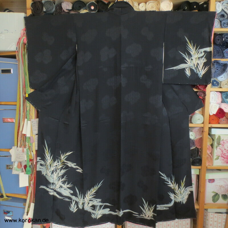 Bambusmuster Homongi Kimono, schwarzgrundig, abstrakter Rinzu Damast