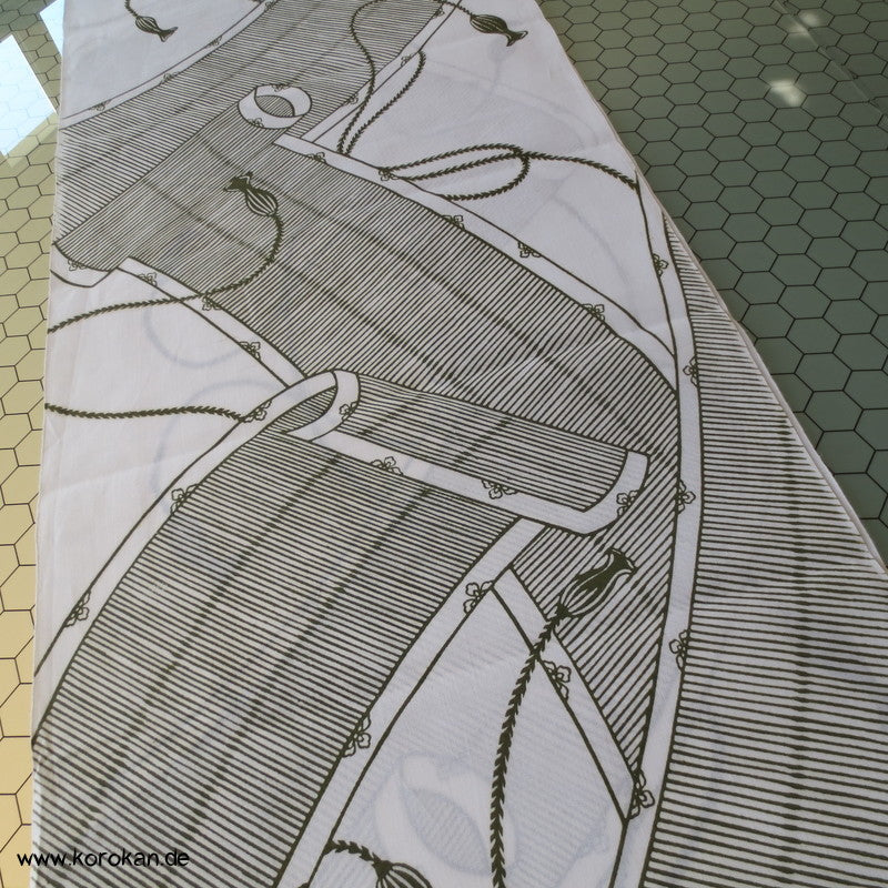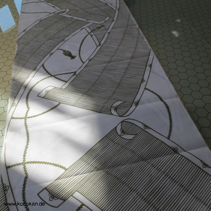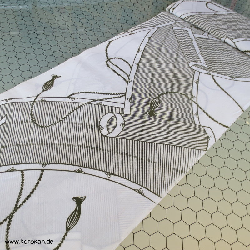Vintage unbenutzter Yukata Leinwand Baumwoll Stoff für Sommerkimono mit Bambusrollos in oliv auf weiß