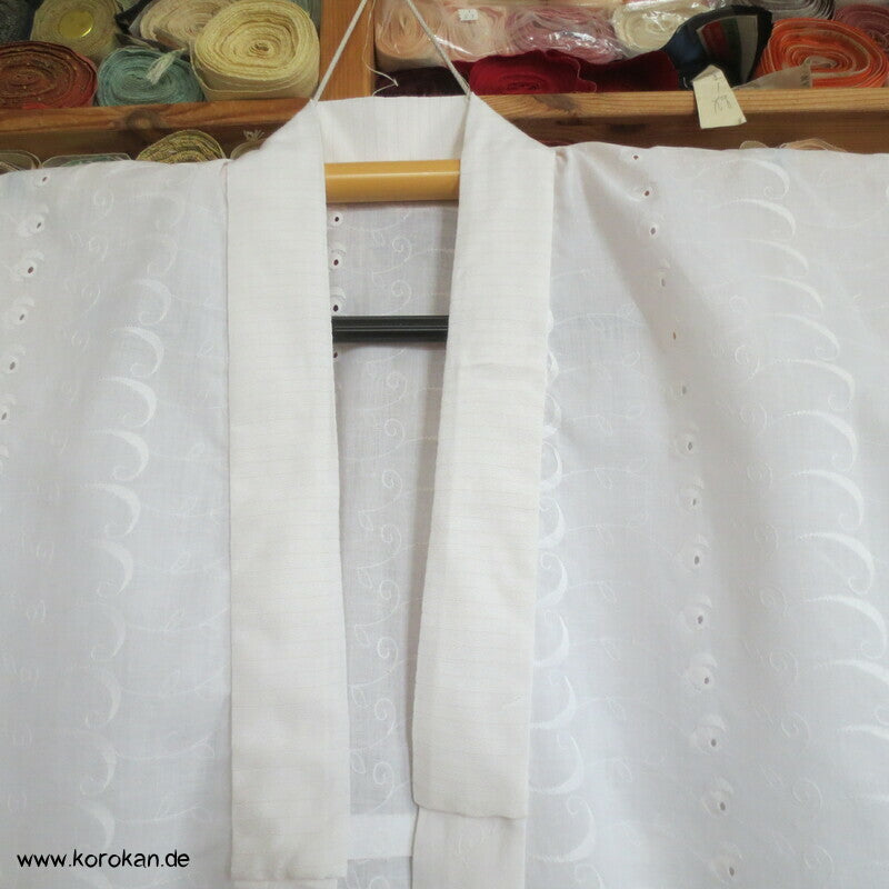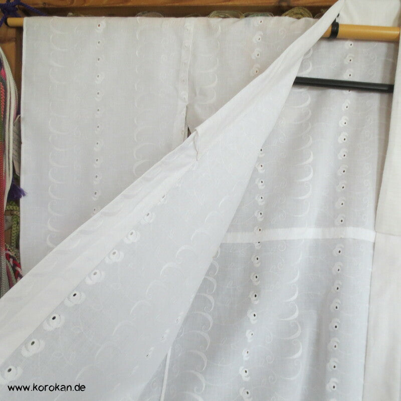 Vintage Juban Unter Kimono aus Baumwoll Batist Stickereispitze, Unterkragen Baumwolle mit Rho Seiden Han Eri benäht.