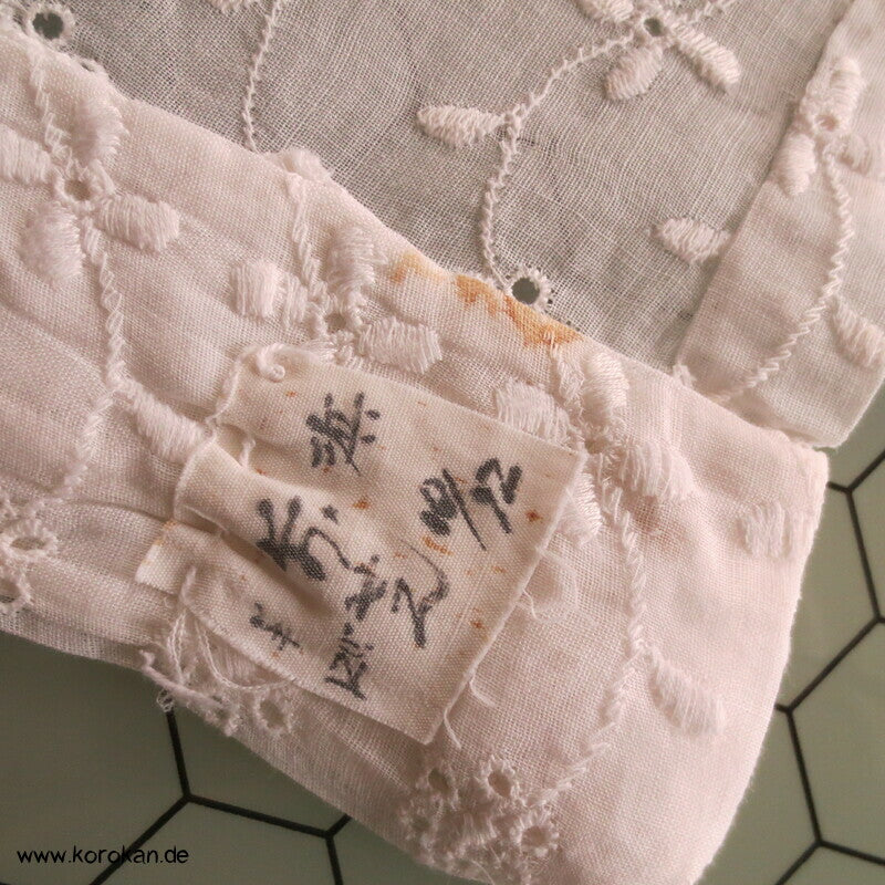 Vintage, eher schon antiker Juban Unter Kimono aus Baumwoll Batist Stickereispitze.