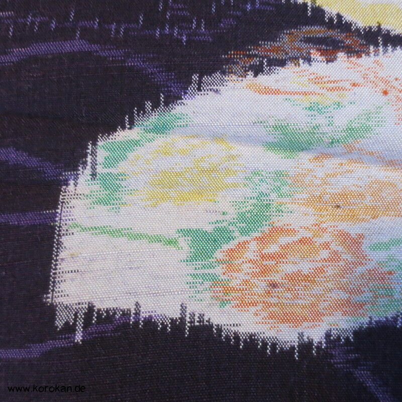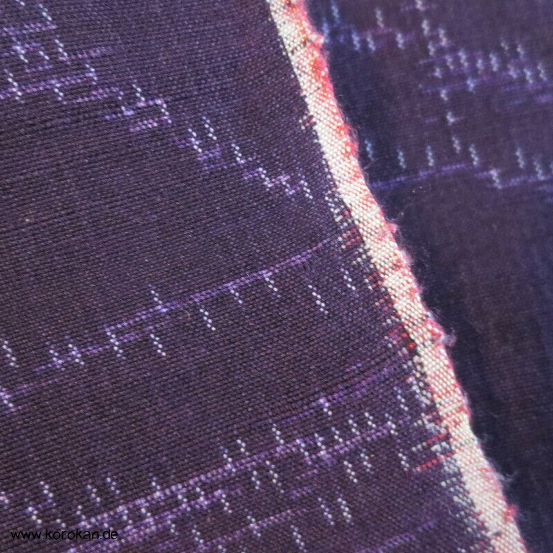 Vintage unbenutzter japanischer Stoffballen Kasuri gewebte Bento Boxen in bunt und als Schattenriss in Murasaki lila Tsumugi Seide, originalgeheftet
