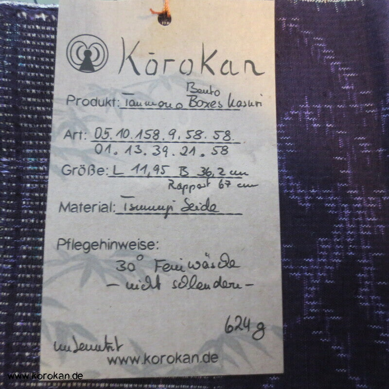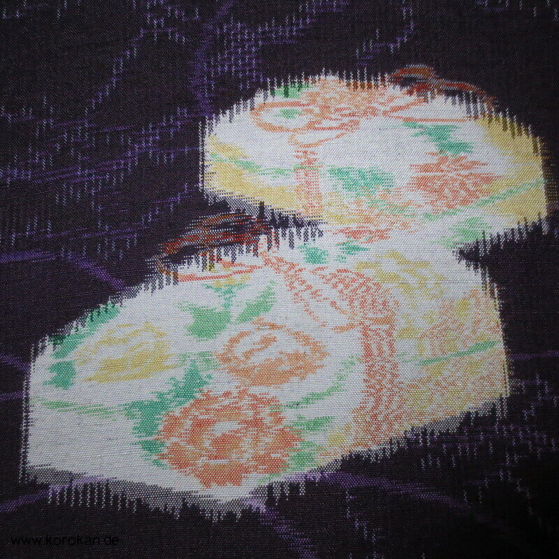 Bento Box Kasuri auf lila Tsumugi Kimono Seide