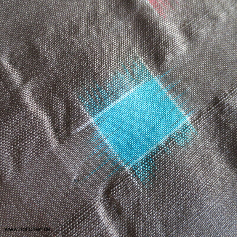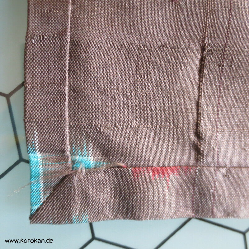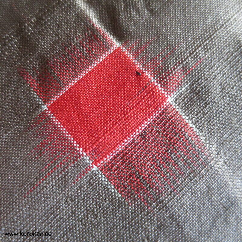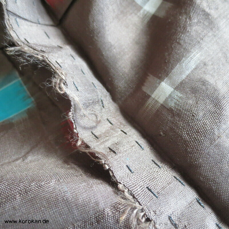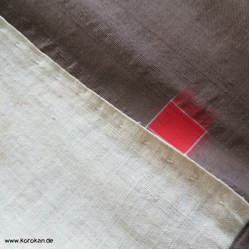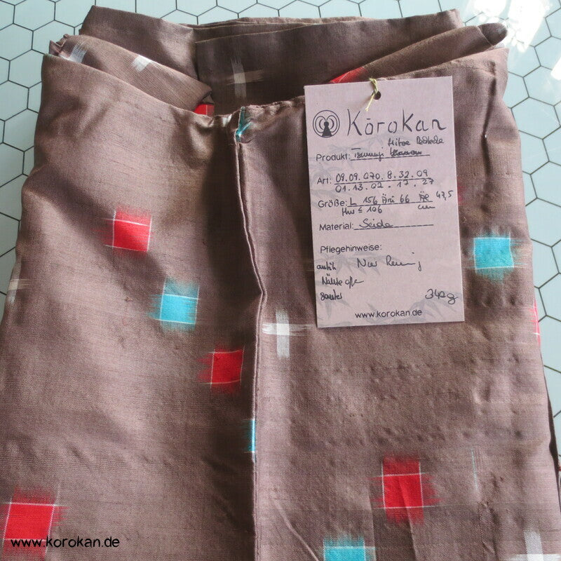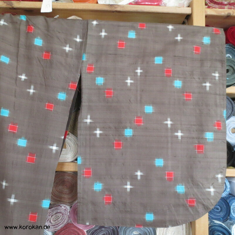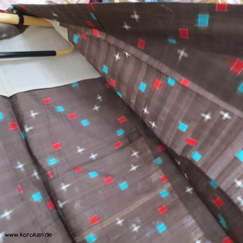 blassbraun mit roten und türkisen Rechtecken Kasuri Meisen Hitoe Kimono