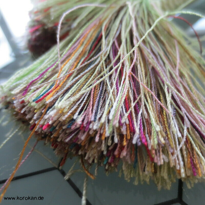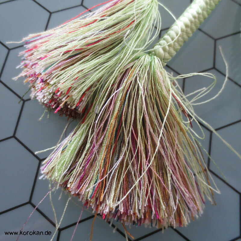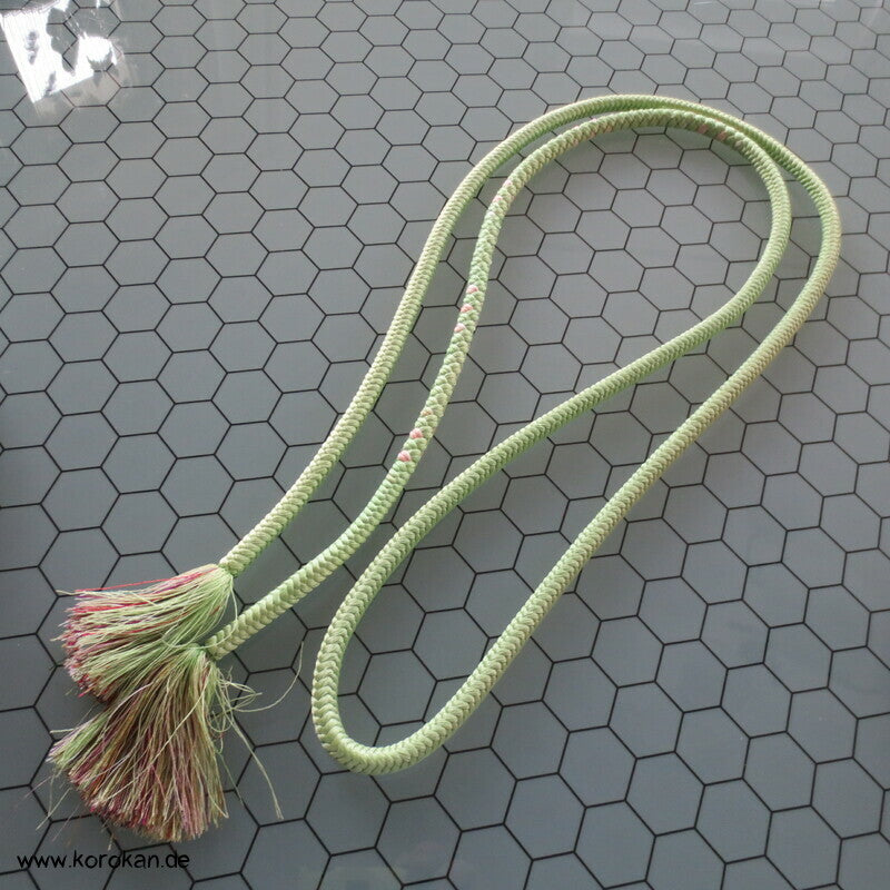 Vintage Seiden Kordel Obijime, hellgrün mit pastellbunten Troddeln