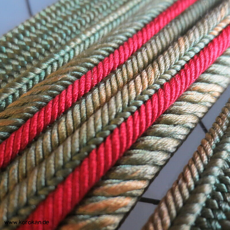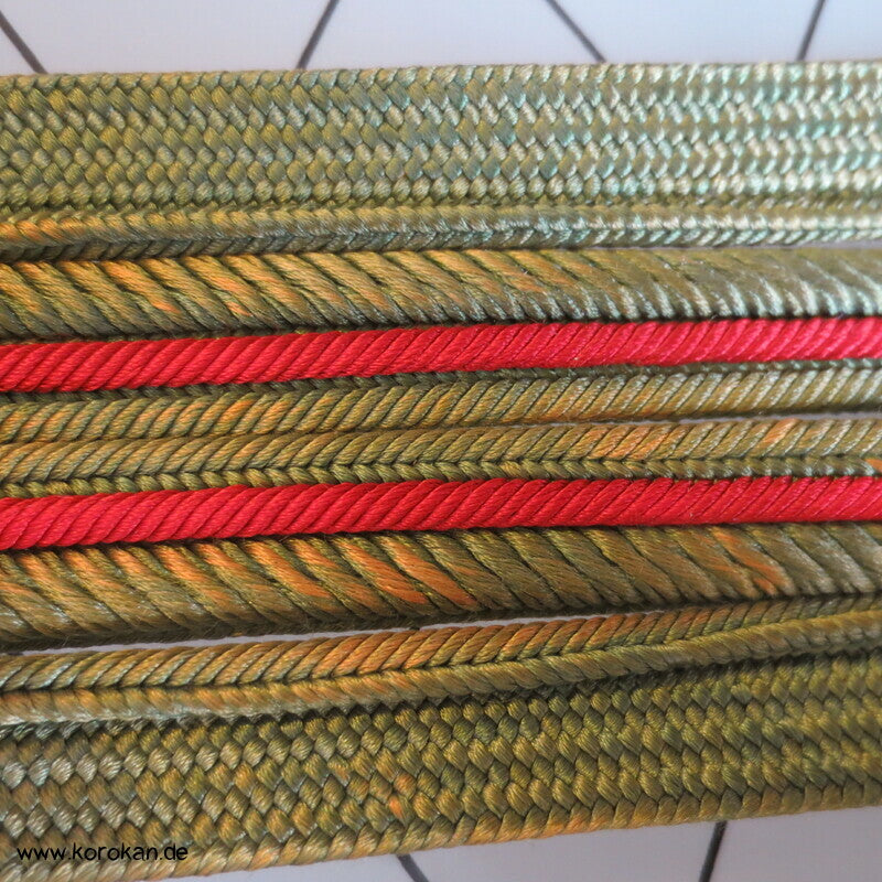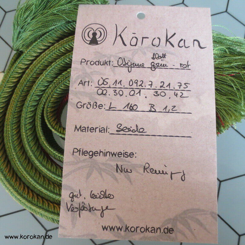 blattgrün - mit rotem Streifen Obijime, Seide
