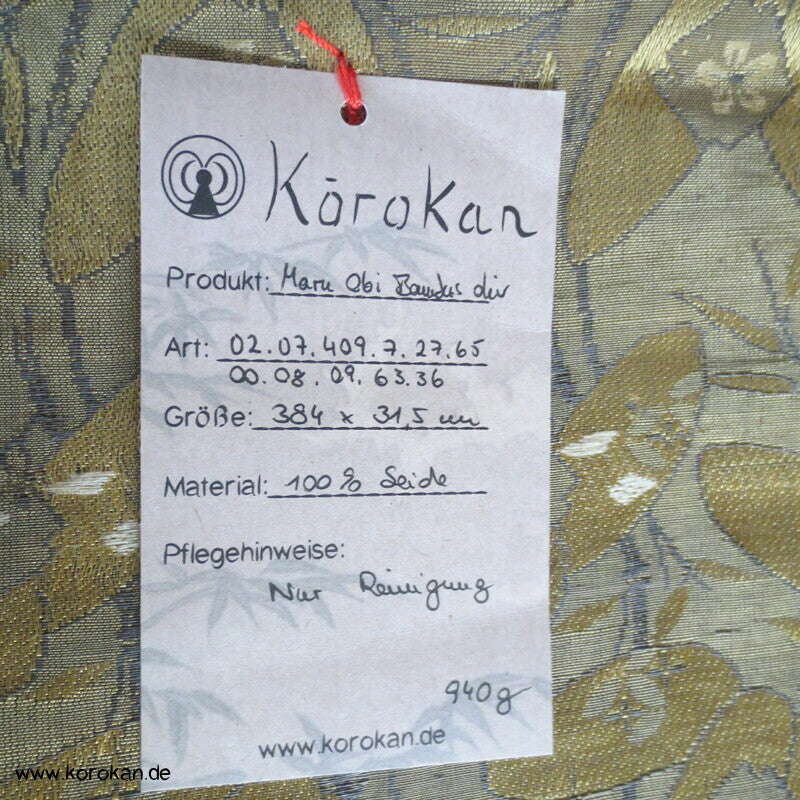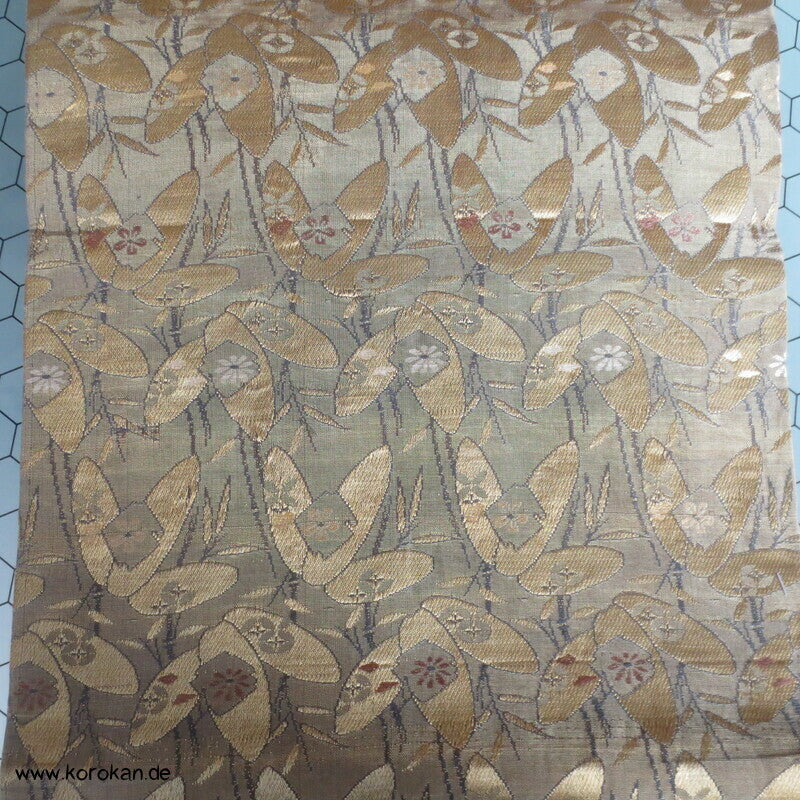 Vintage, eher schon antiker klassischer Maru Obi Seidenbrokat olive Blättermotive