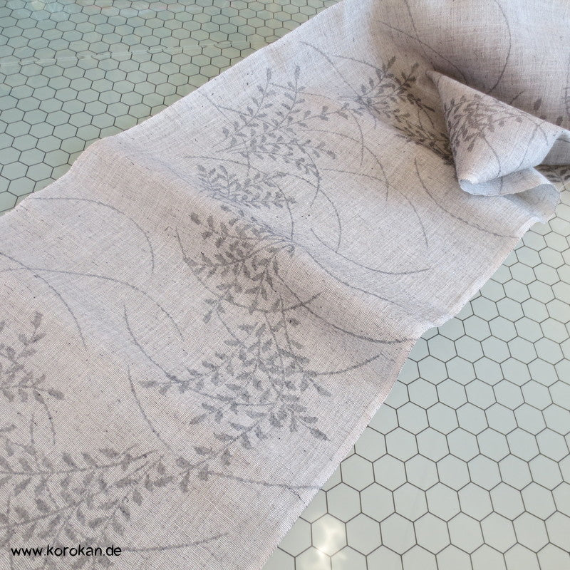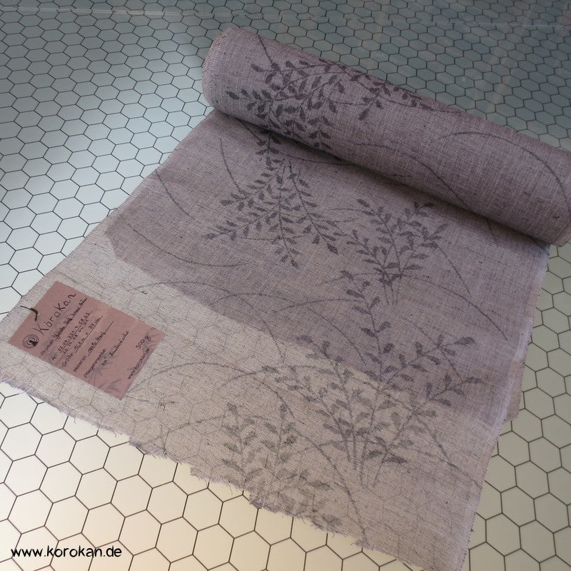 Yukata Kimono Hanf Stoffrolle feine graue Zweige in natur