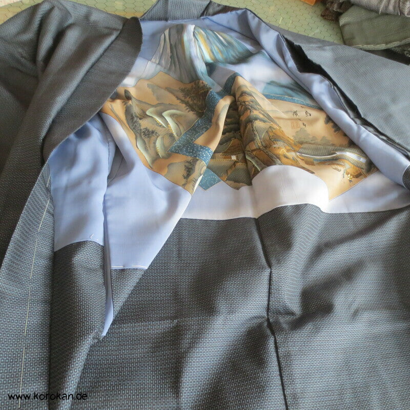 blau hellblaue Tsumugi Seiden Kasuri Haori, Bildfutter