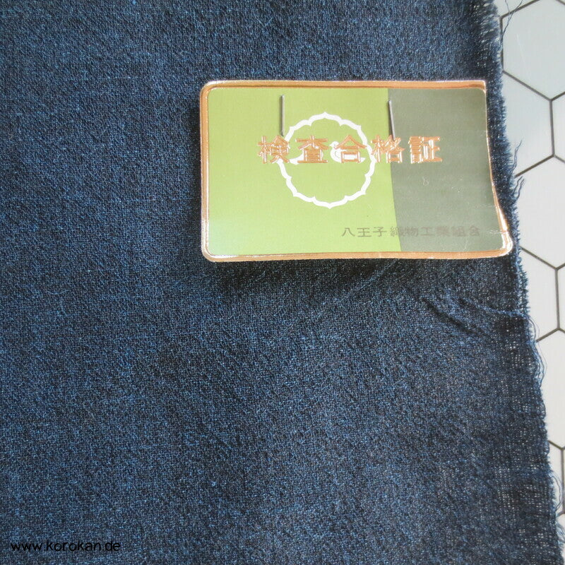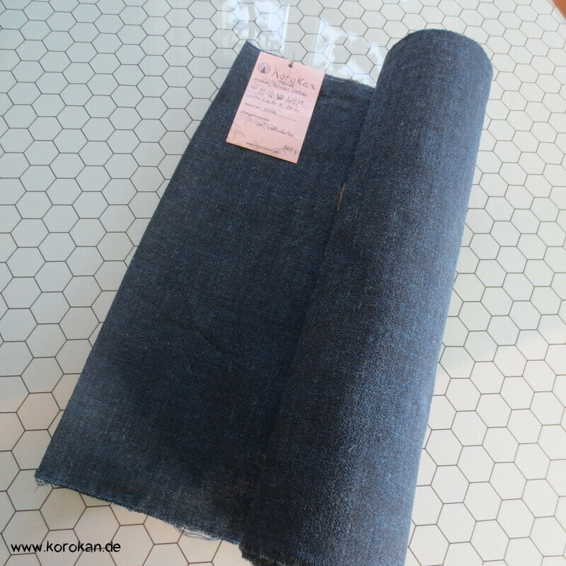 japanischer Vintage unbenutzte originalgeheftete Wolle Kimono Stoffrolle, indigoblauer Crepe Georgette meliert