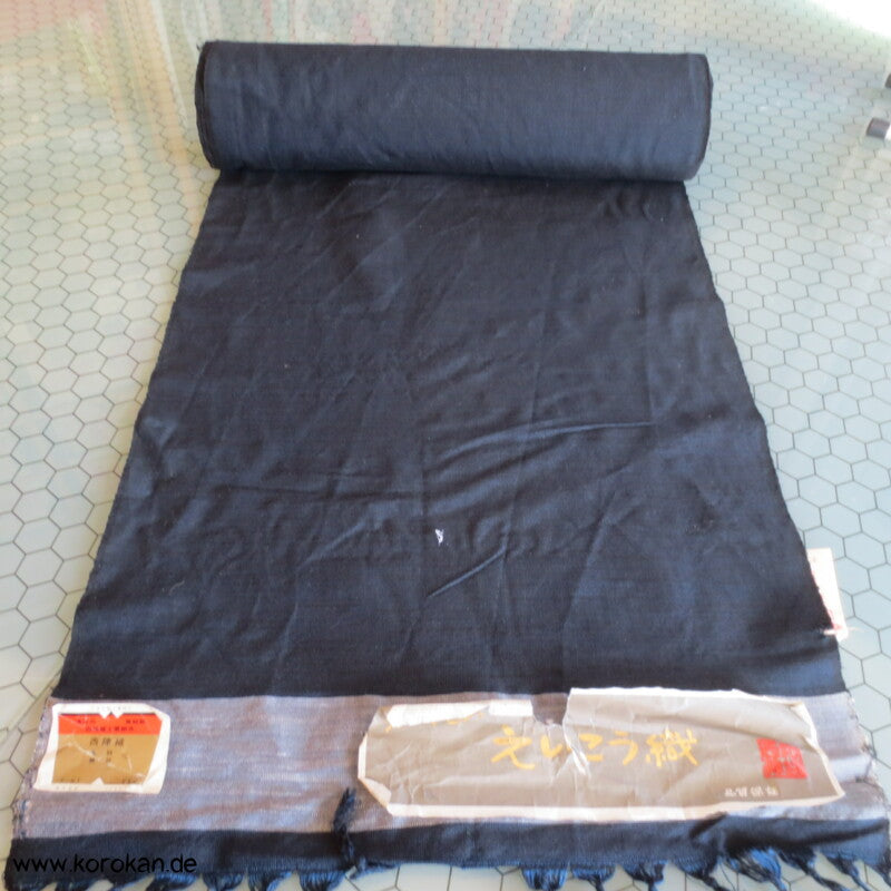 Vintage unbenutzte Stoffrolle Kimono Tanmono für Männer Kimono aus dicker grob gewebter Mischung, blau schwarz melierter leicht kreppiger Stoff