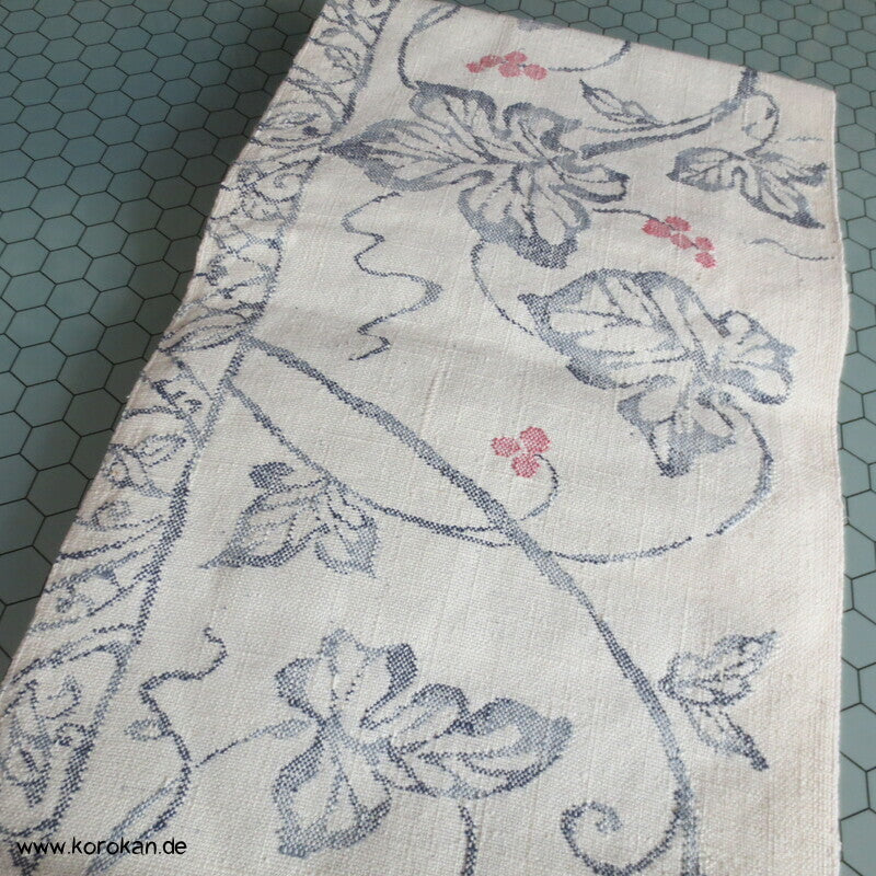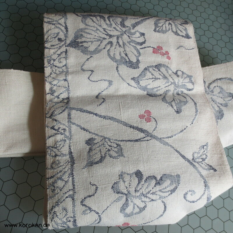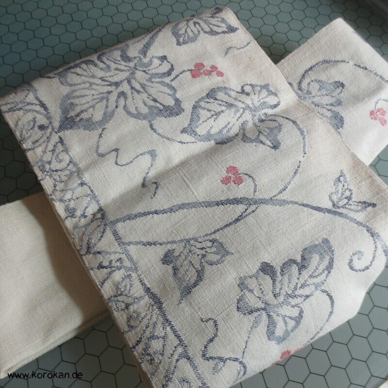 Vintage, eher antiker Seiden Nagoya Obi Weinblätter grober Tsumugi Jacquard