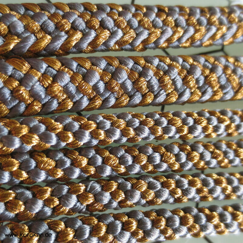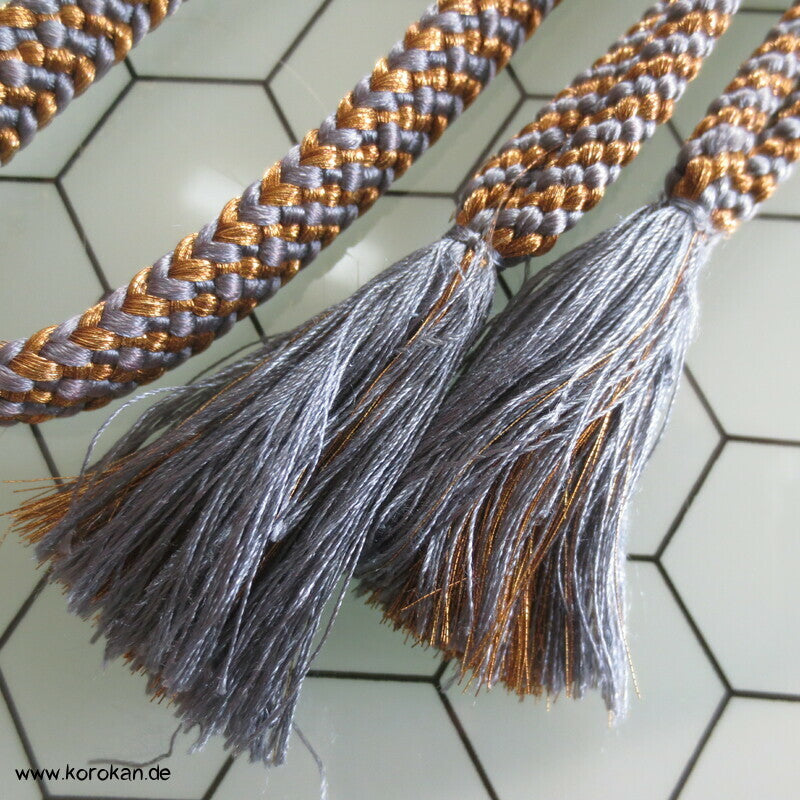 blaugrau - gold Kordel Obijime, teils zweigeteilt