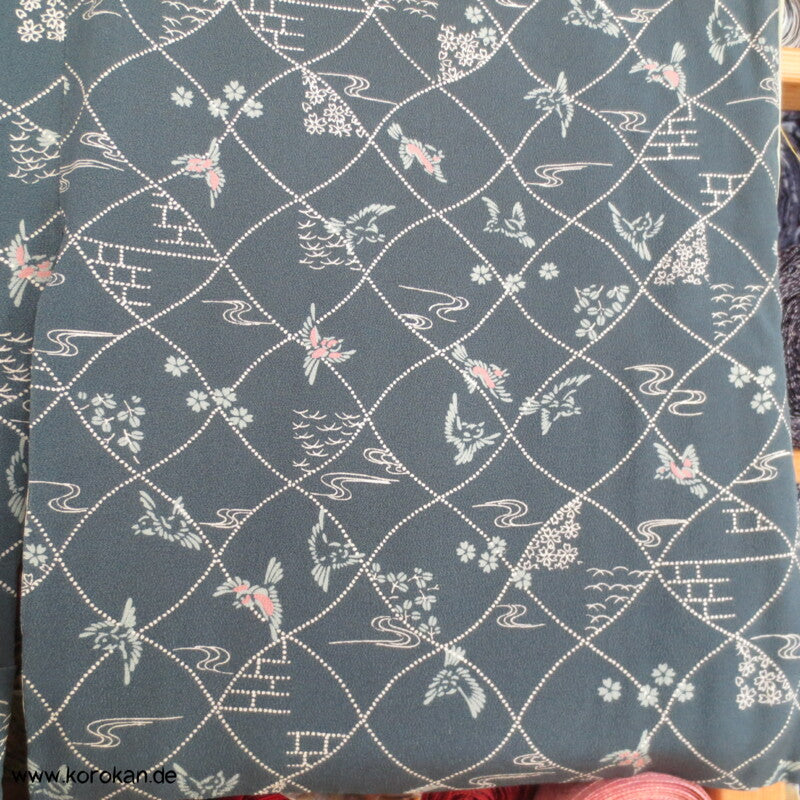 blaugrau, Vögelchen Komon Seiden Kimono - nur als Materiallager