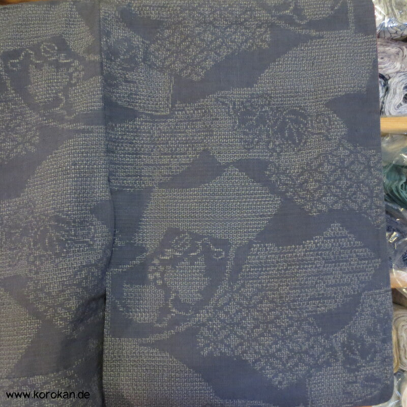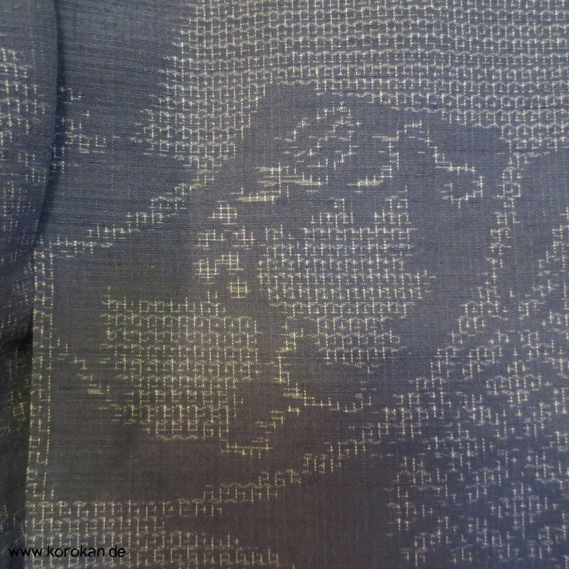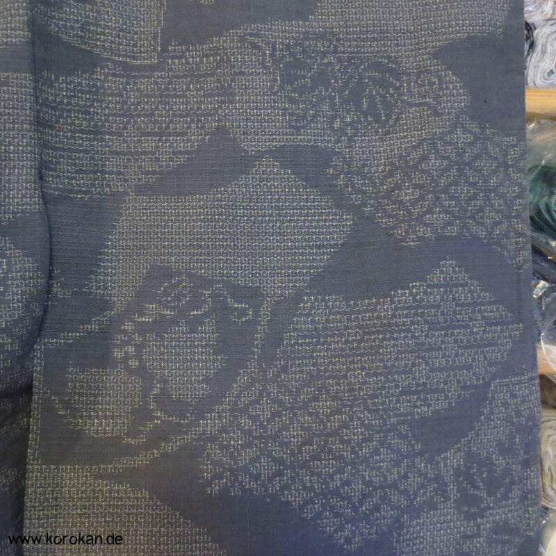 blaugraue Fächer Kasuri Tsumugi Seiden Kimono