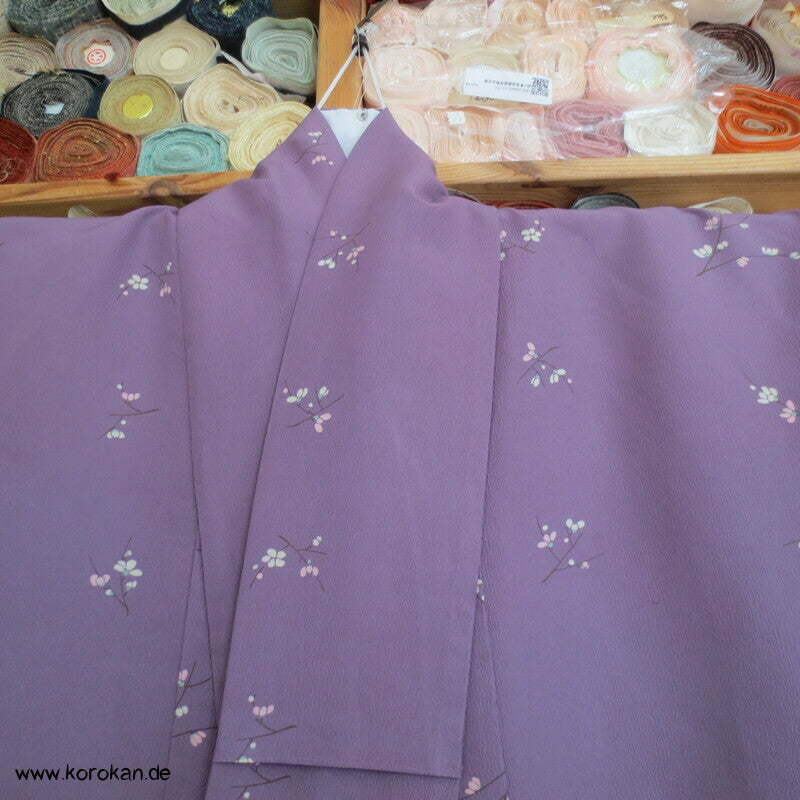 gekürzter Vintage Hitoe ungefütterter Hue Komon Kimono Komon Blümchen auf Crepe, - komplett synthetisch