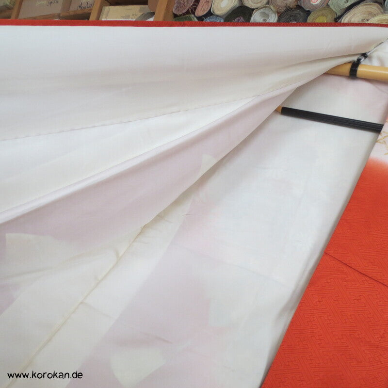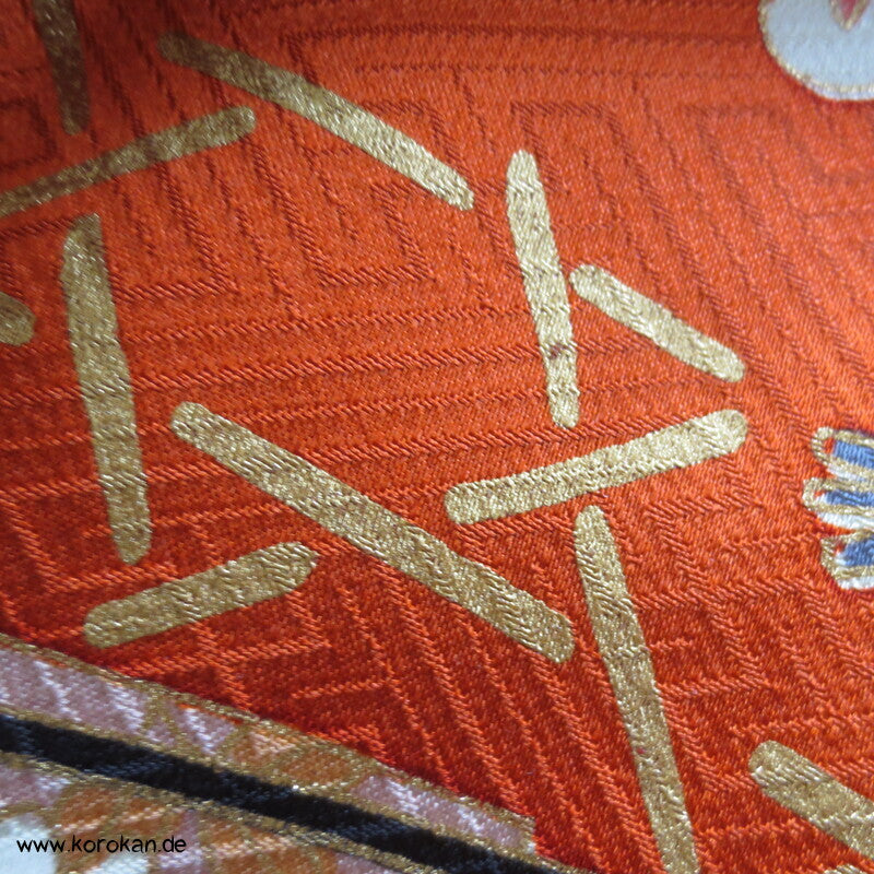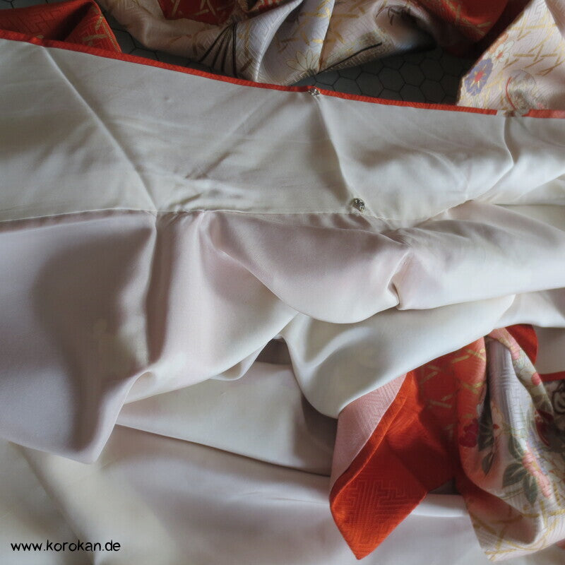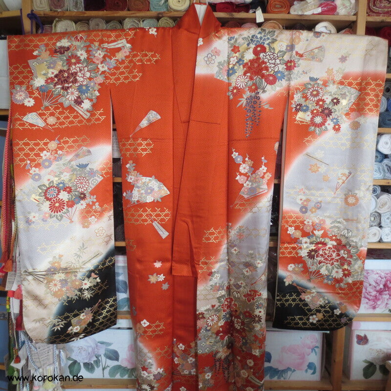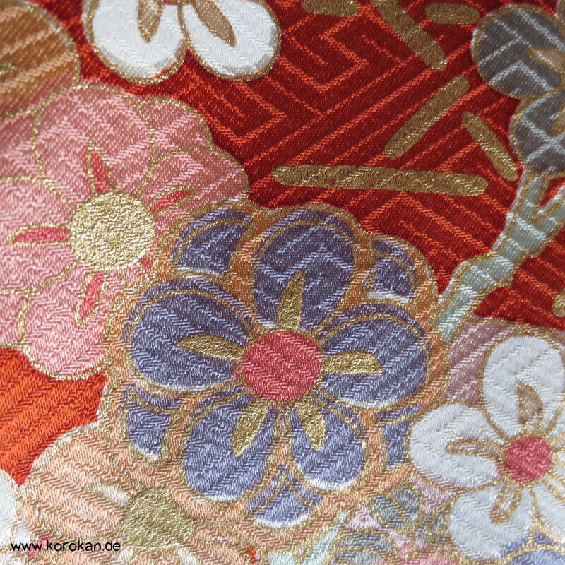 Blumen auf Bambusgittern Rinzu Seiden Damast Furisode