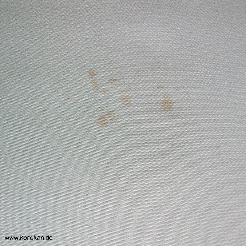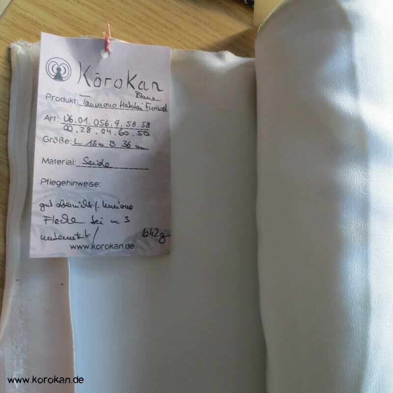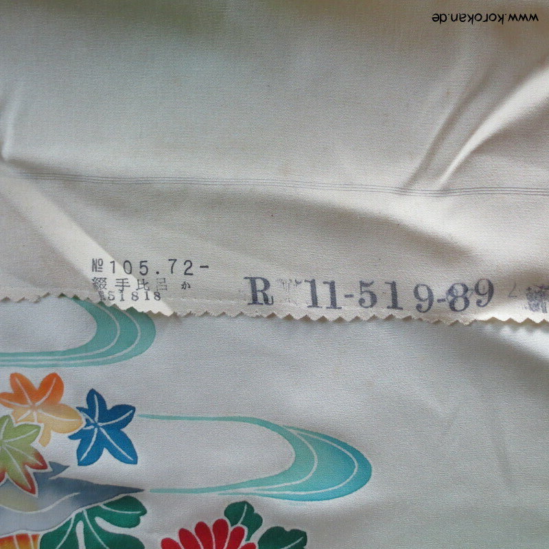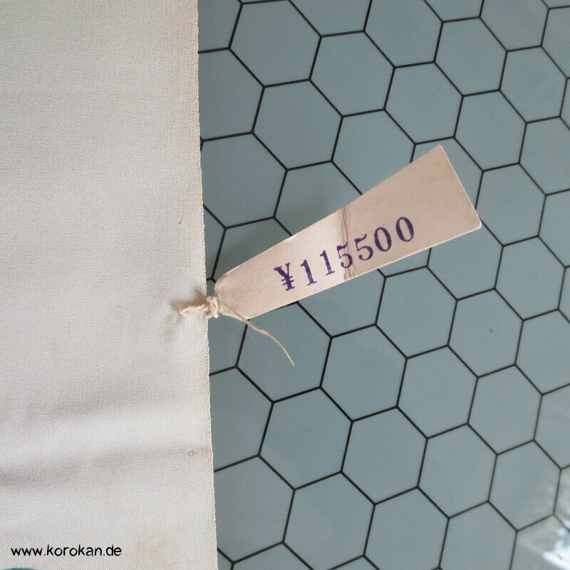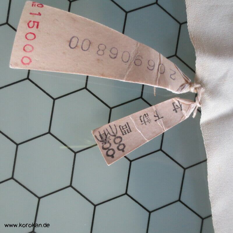 Zustand insgesamt gut, aber nicht mehr für einen Kimono, bei Meter 3 gibt es einen Fleck im Material - für zugeschnittene Kleidung super, da kann man die kleine Stelle aussparen
