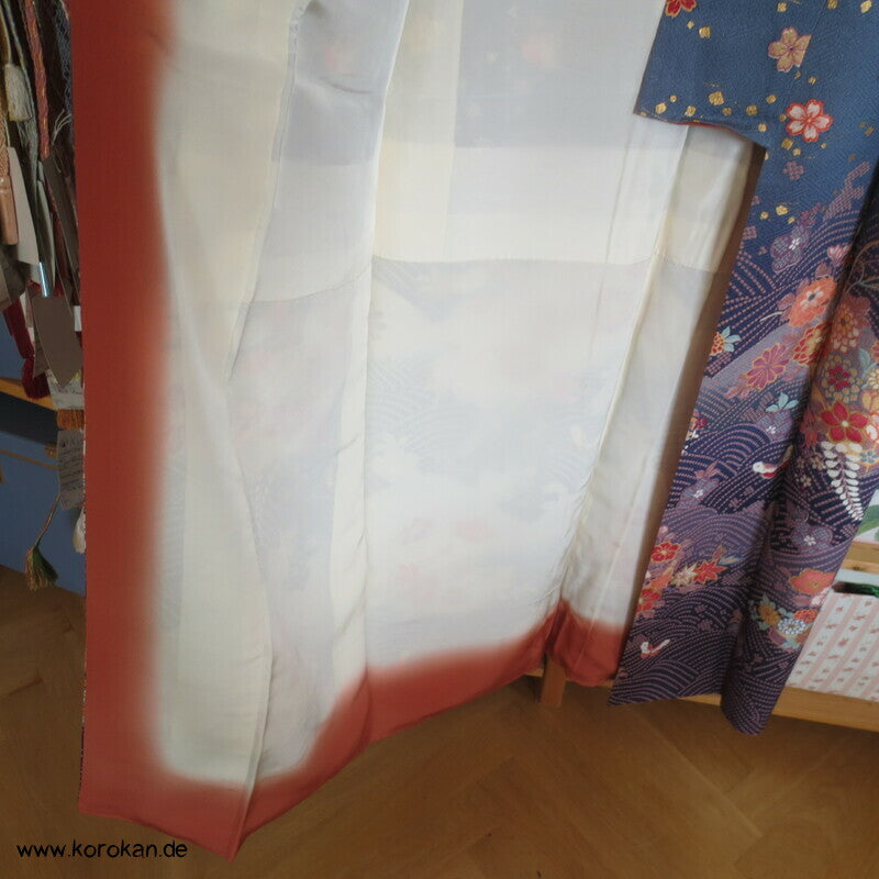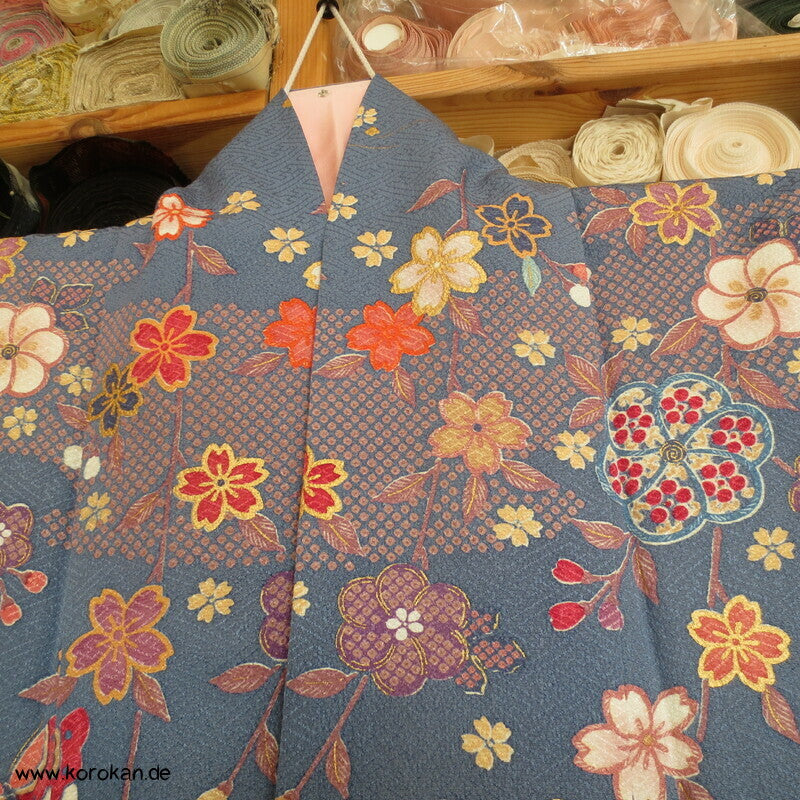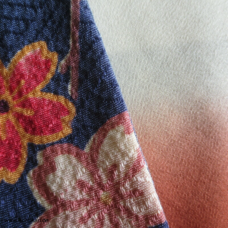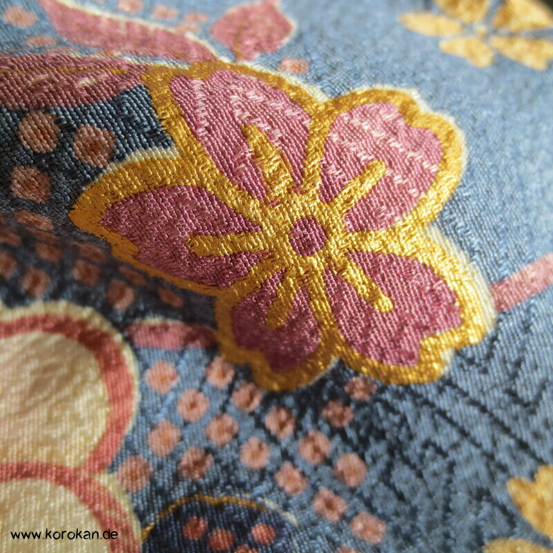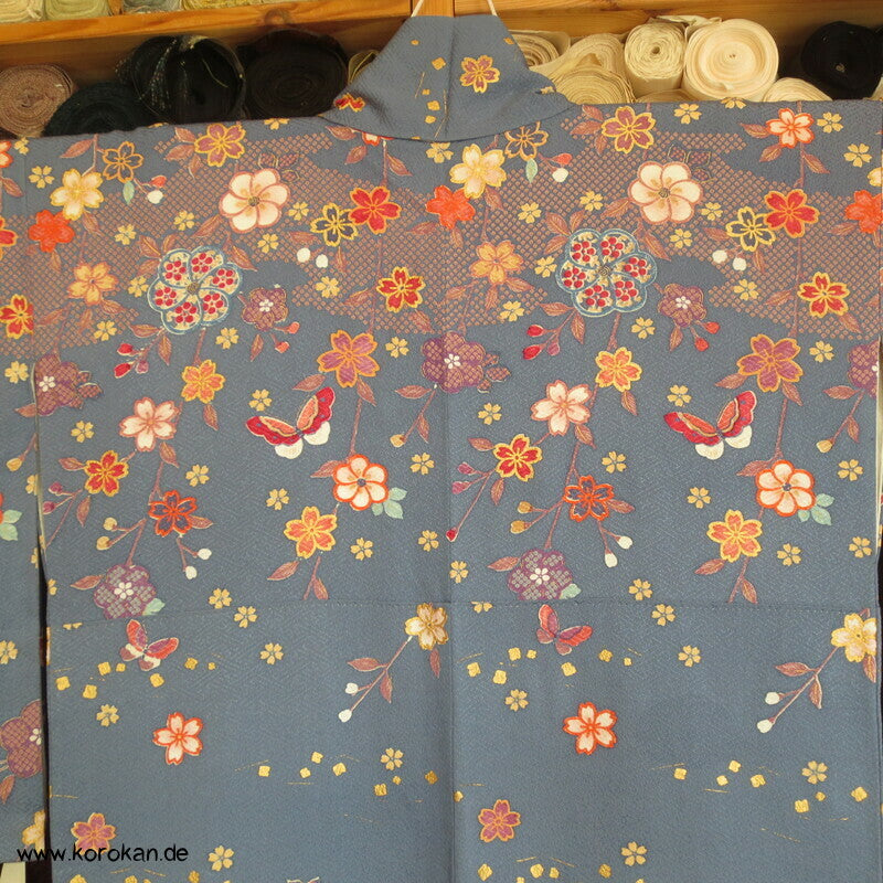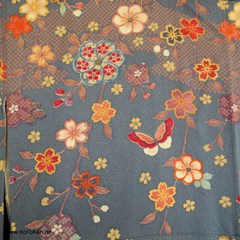 Homongi Kimono Seidendamast Blumen und Schmetterlinge über Wellen
