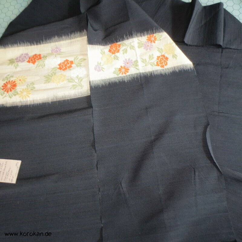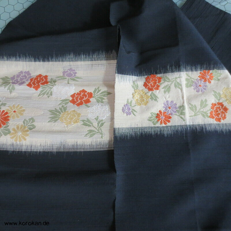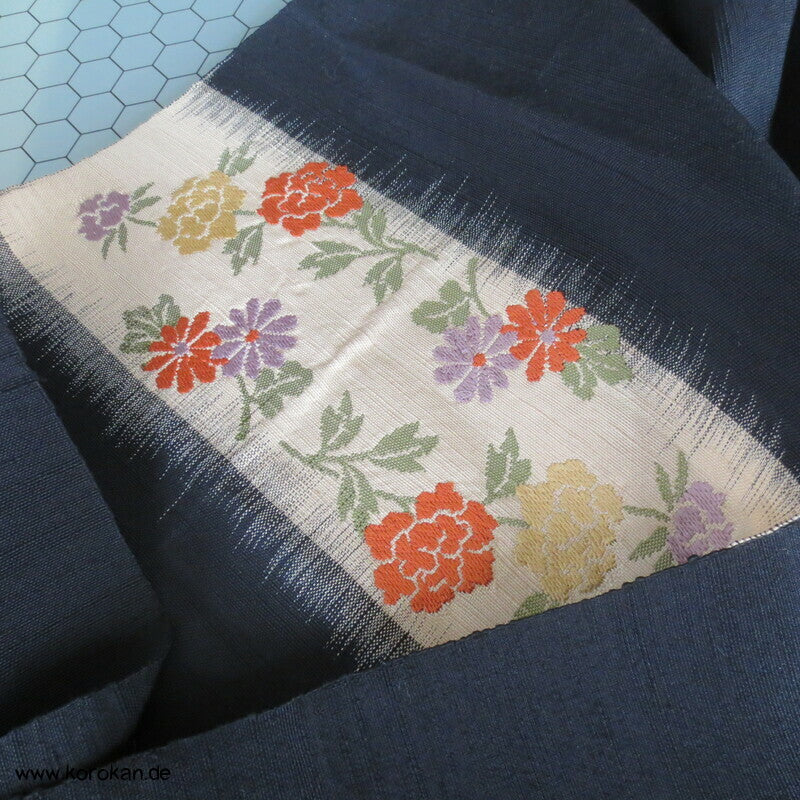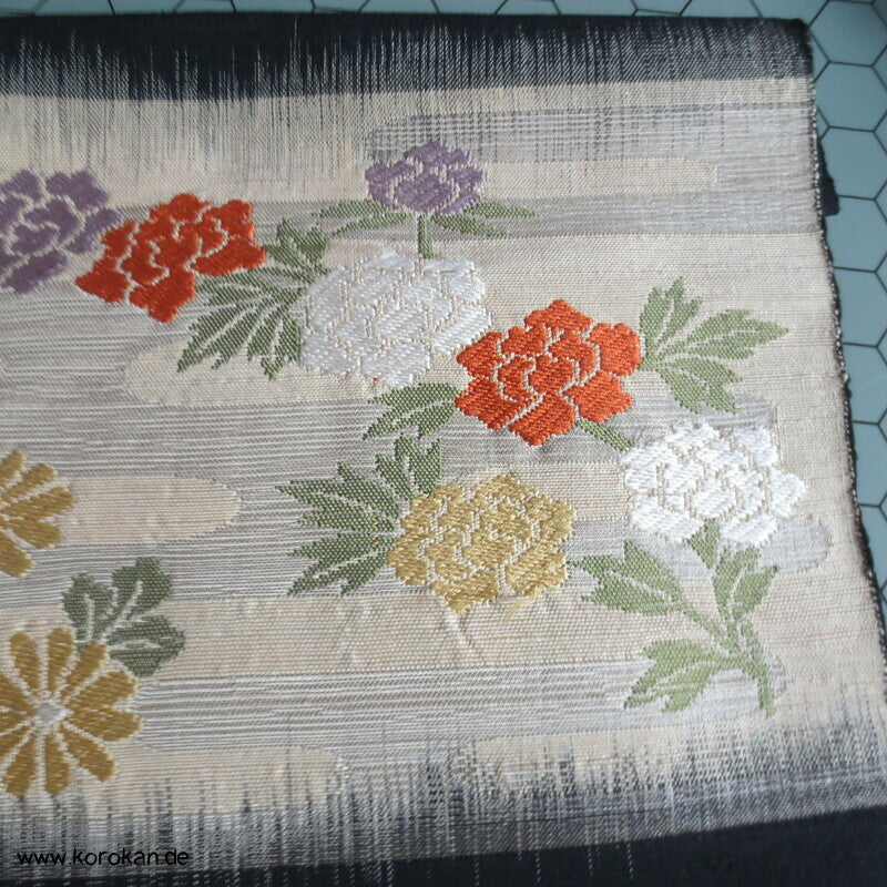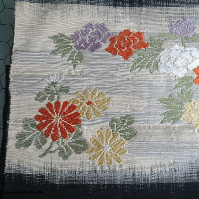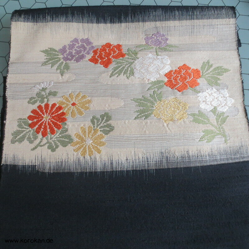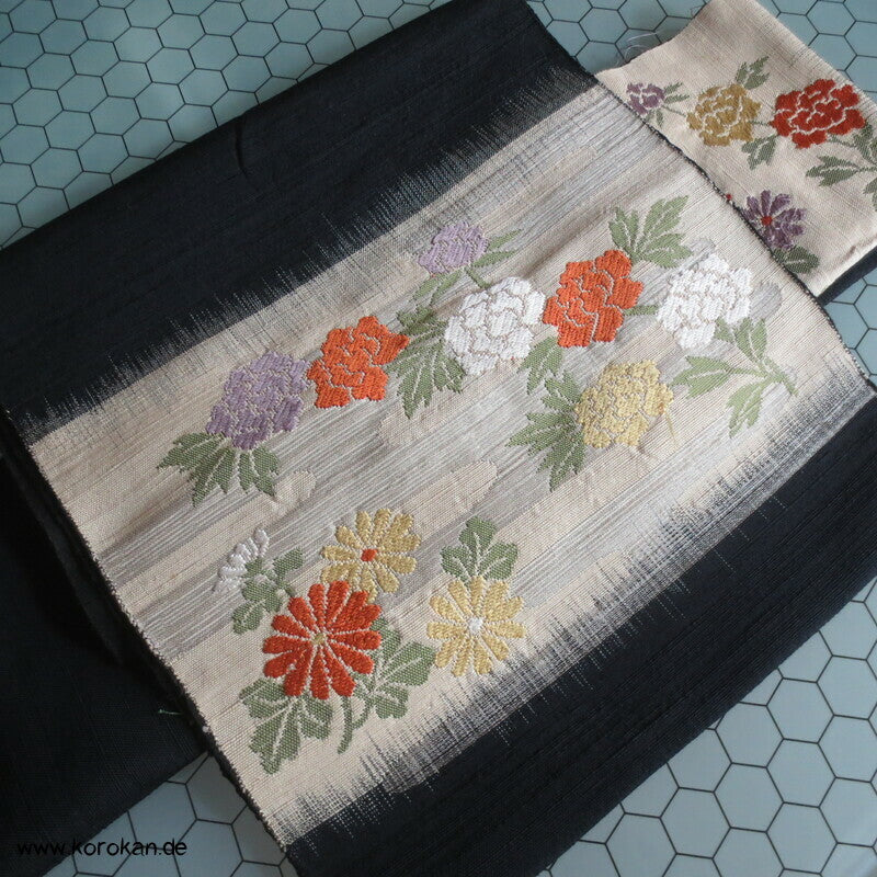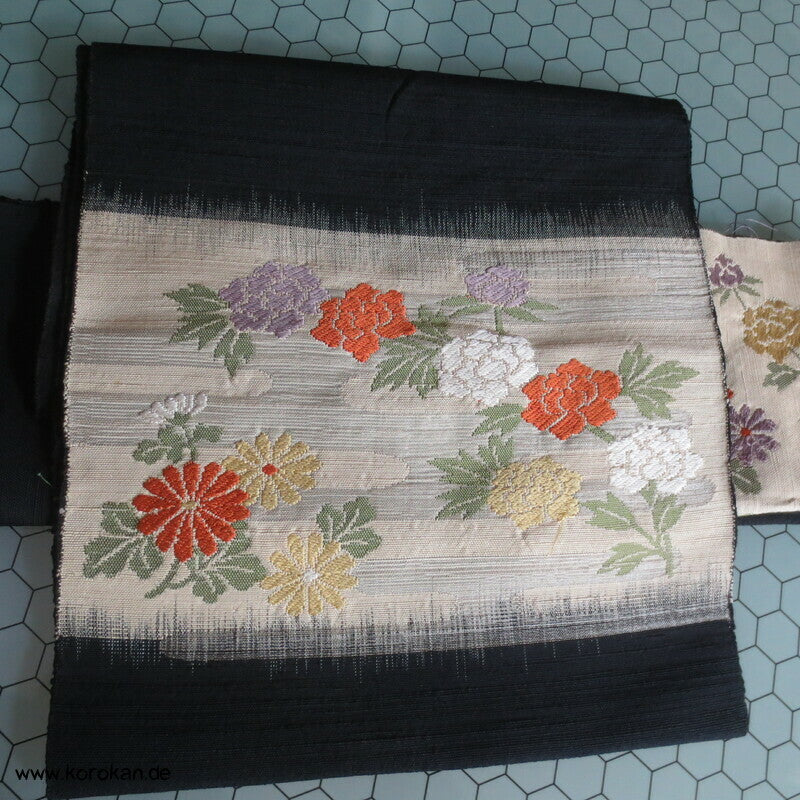 Blumenband Nagoya Obi - schwarze Tsumugi Seide