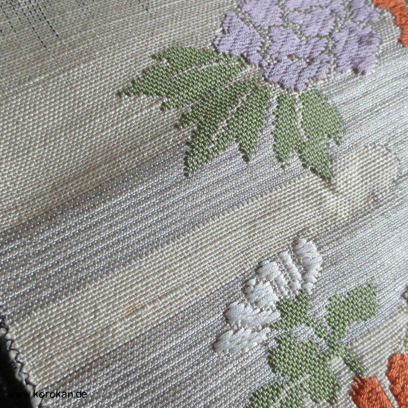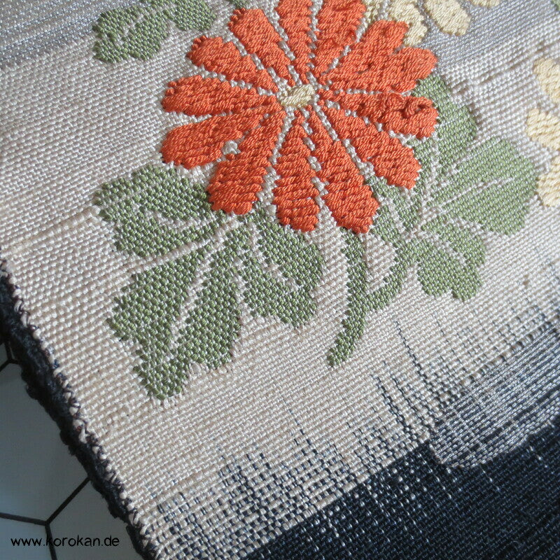 Vintage, eher antiker Seiden Nagoya Obi Blütenzweig grober Tsumugi Jacquard
