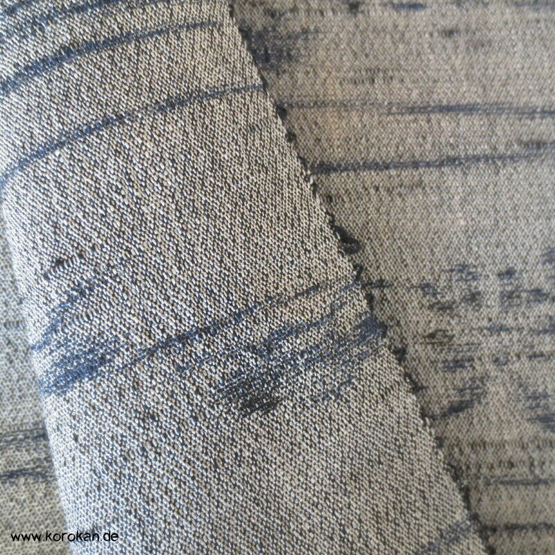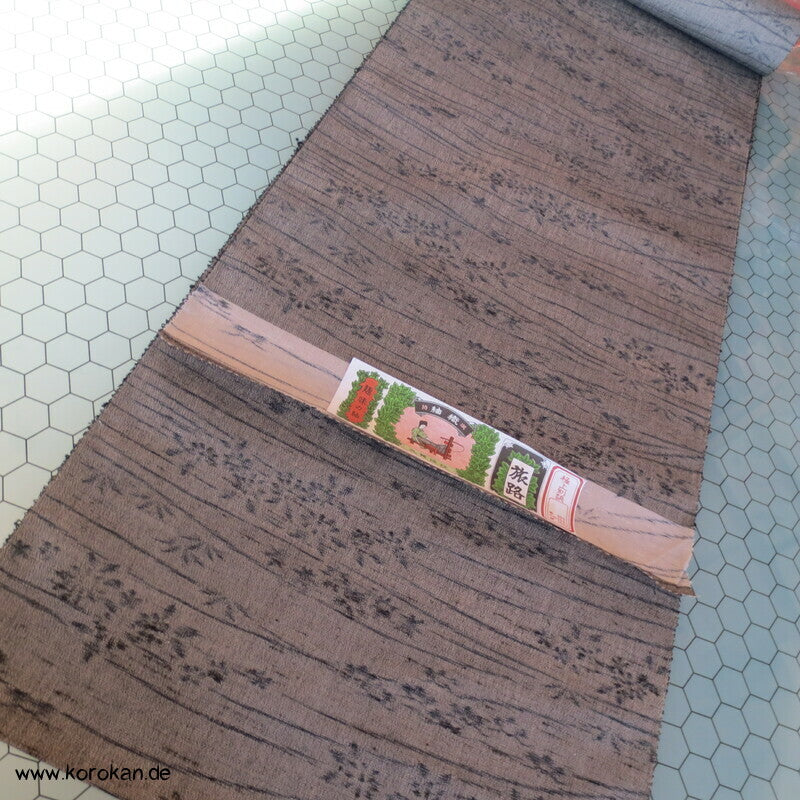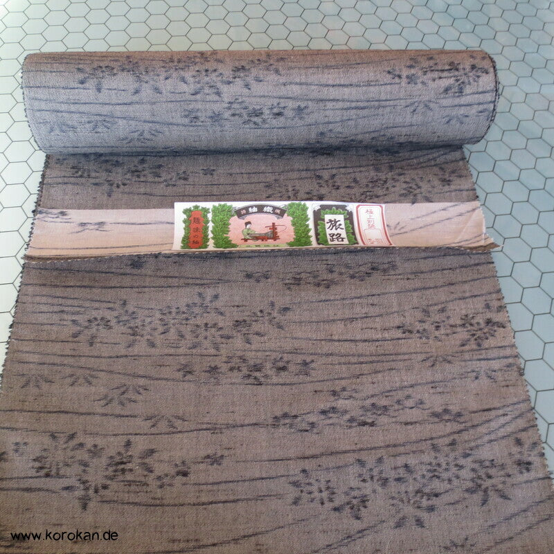 Vintage unbenutzte originalgeheftete Kimono Stoff Rolle rauhe Leinwandbindung mit Kasuri garngefärbten Blüten und Gräsern