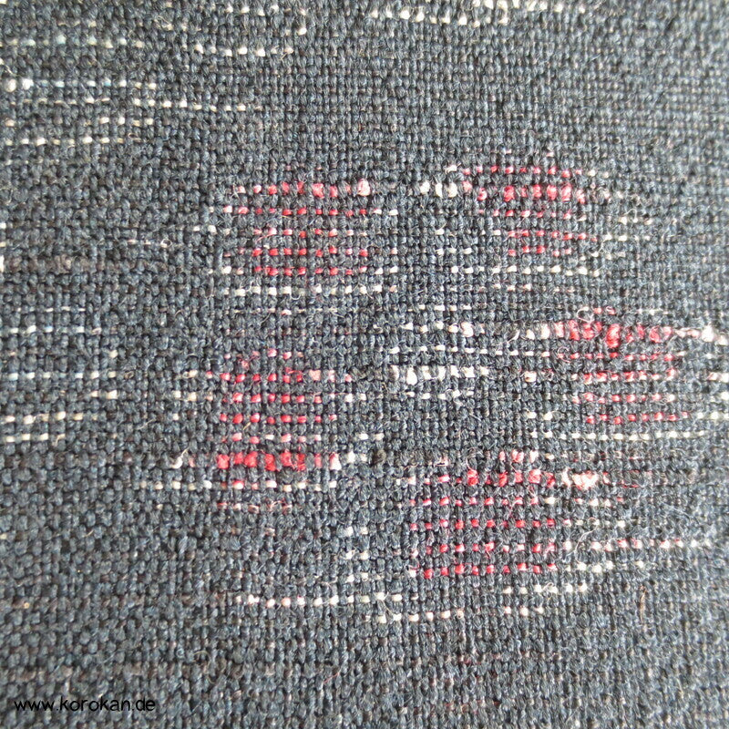 Vintage unbenutzte Stoffrolle gewebt blauschwarz mit rot und weißen Kasuri garngefärbten Blüten Kimono Tanmono