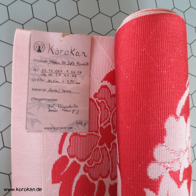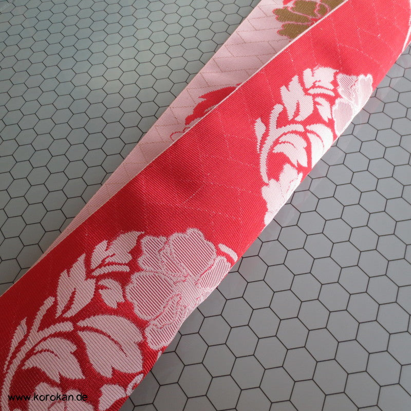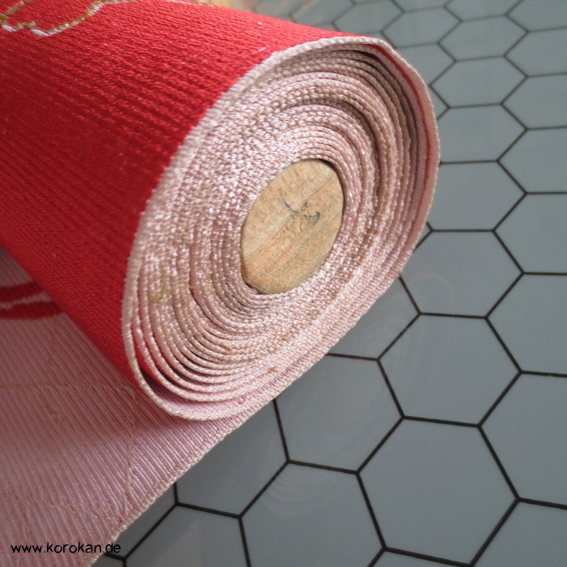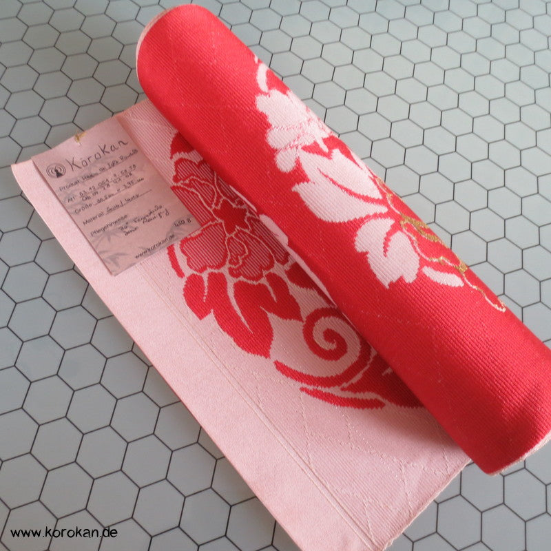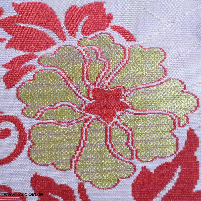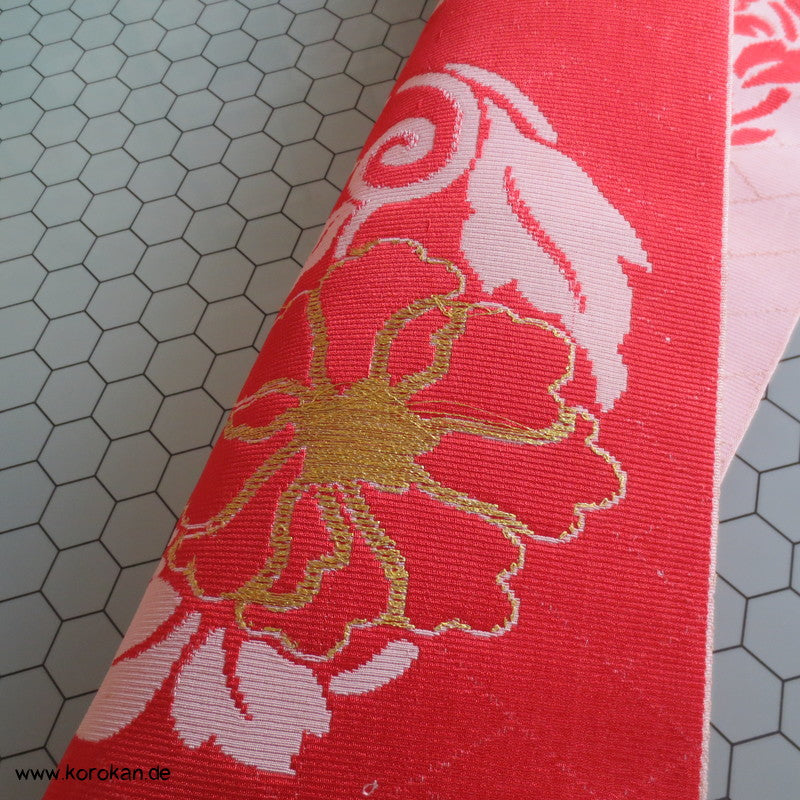 Hassun Obi Tanmono Stoffrolle mit Blumenrondellen gold rot aus blassrosa