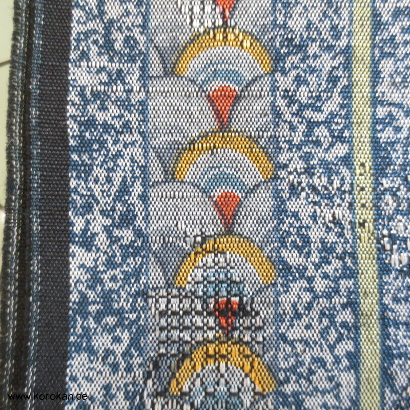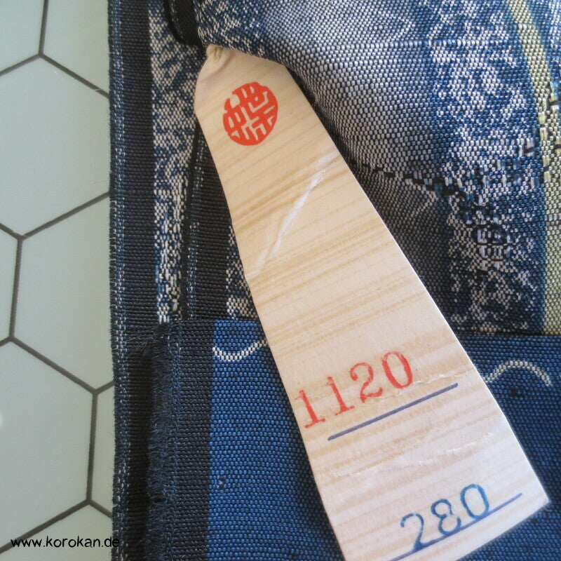 Vintage unbenutzter Jacquard Kimono Stoff mit Blütenstreifen in blaugrau