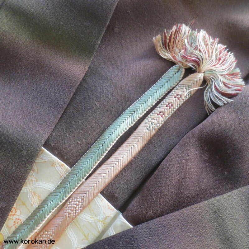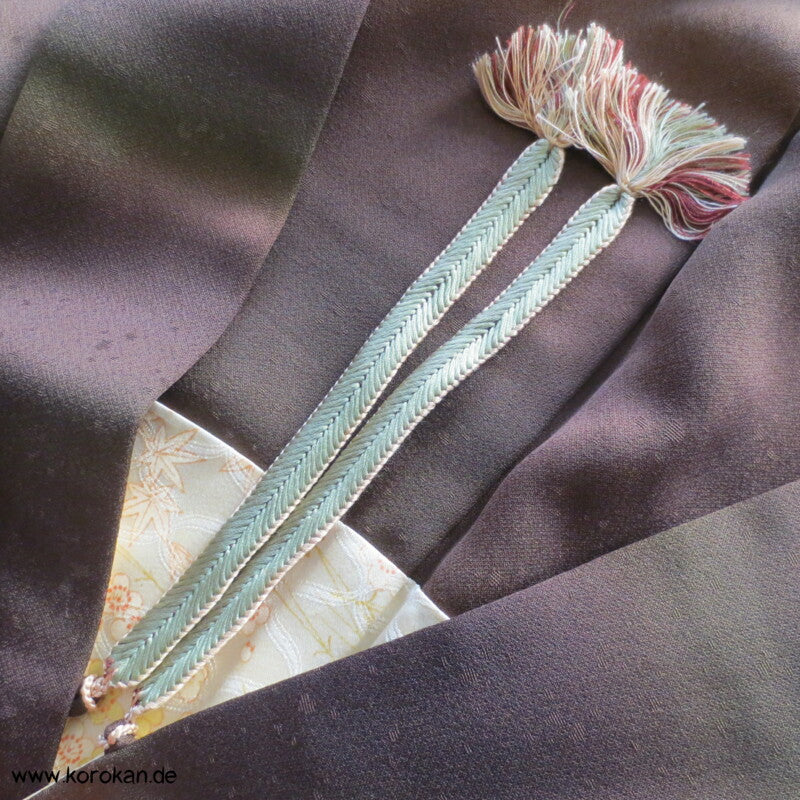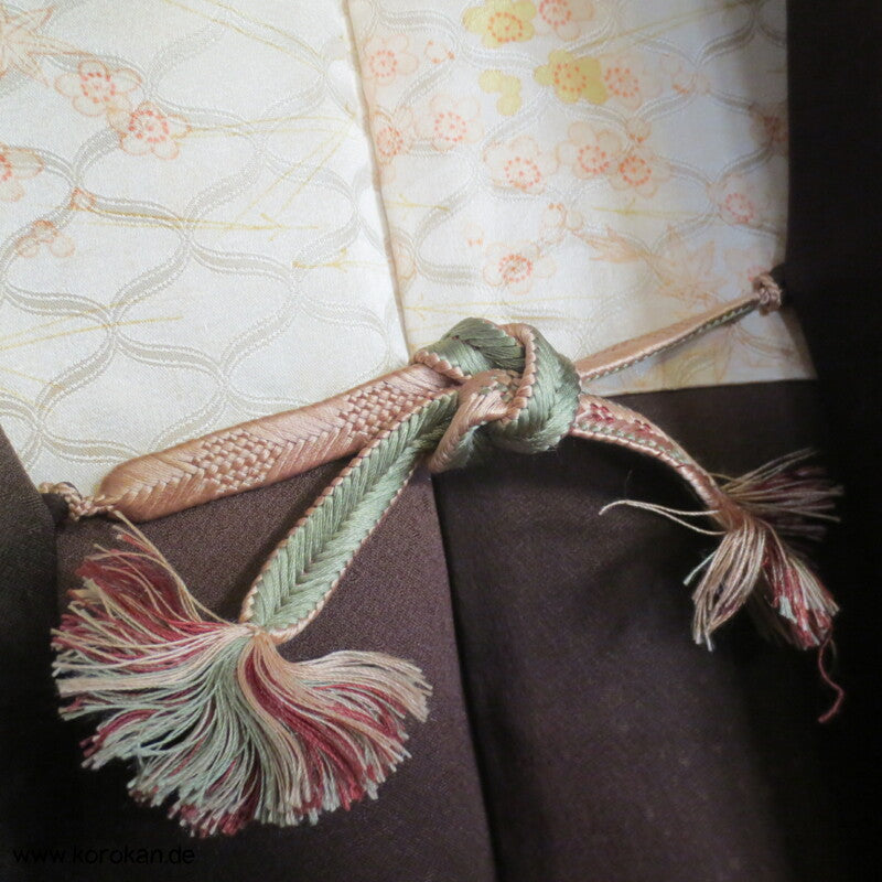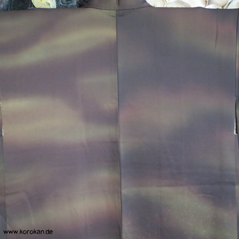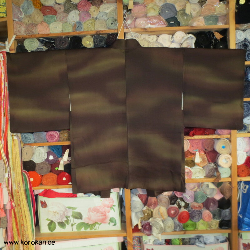 Bokashi Farbverlauf braun-oliv Seidendamast Haori Kimono Jacke