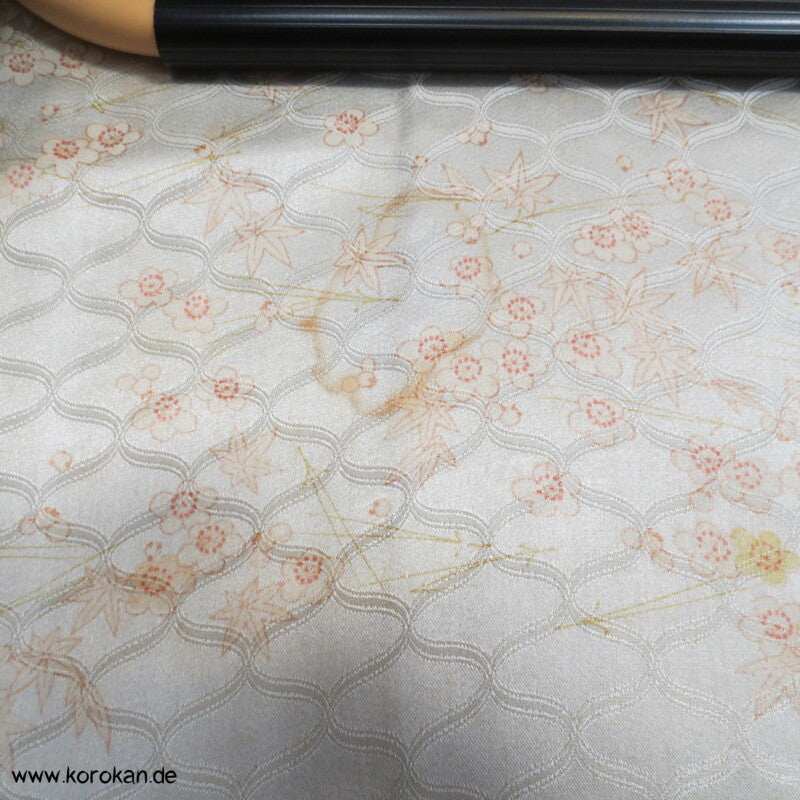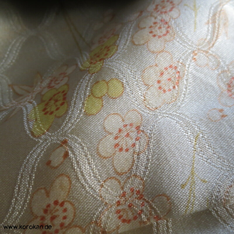Vintage Haori Kimono Jacke Seidendamast mit Schneegestöbermuster mit Bokashi Farbverlauf, bedrucktem Seidendamastfutter und Haori Himo