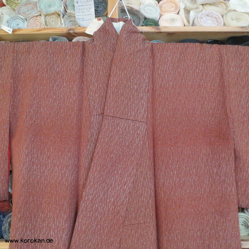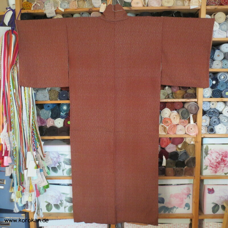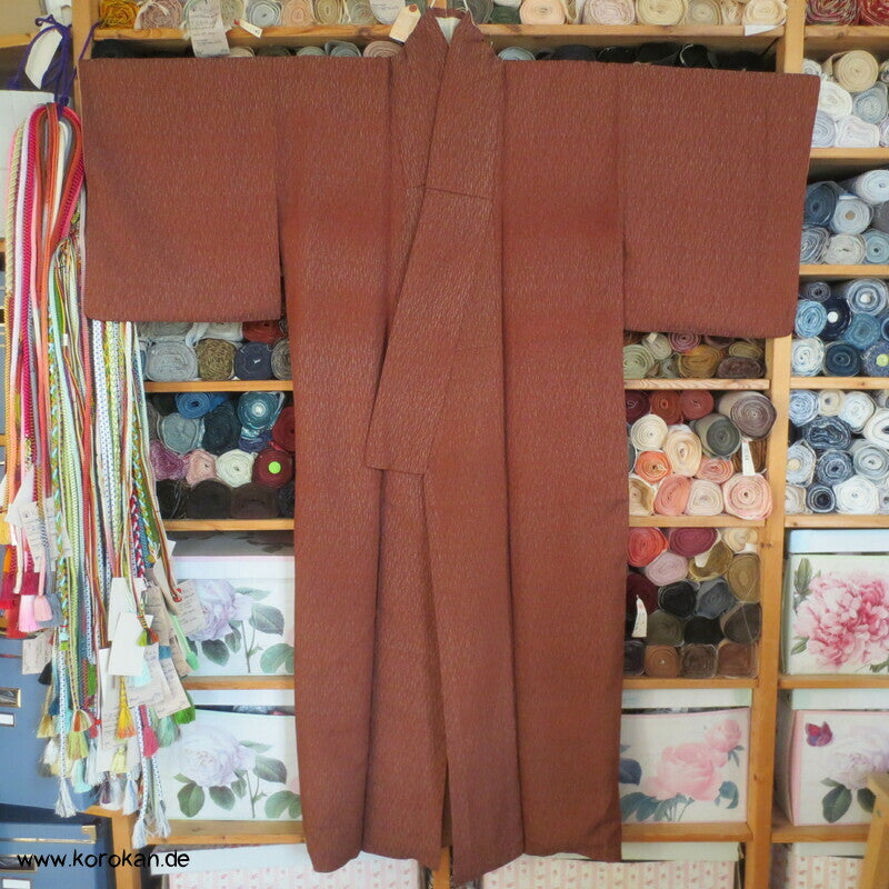 antiker braun roter Borkenkrepp Iromuji Kimono ohne weitergehende Muster als das Material durch die Webung hatt.