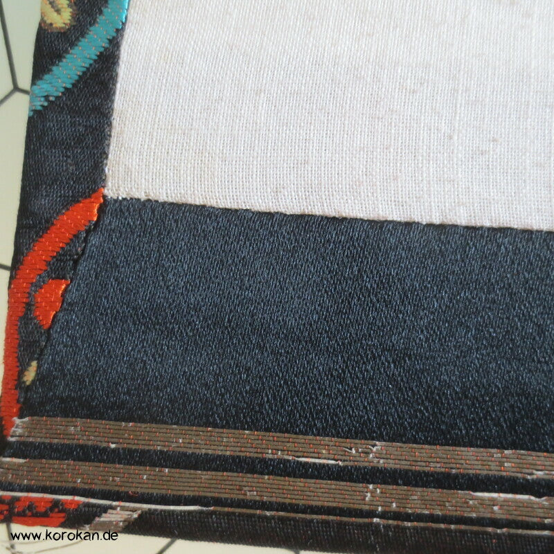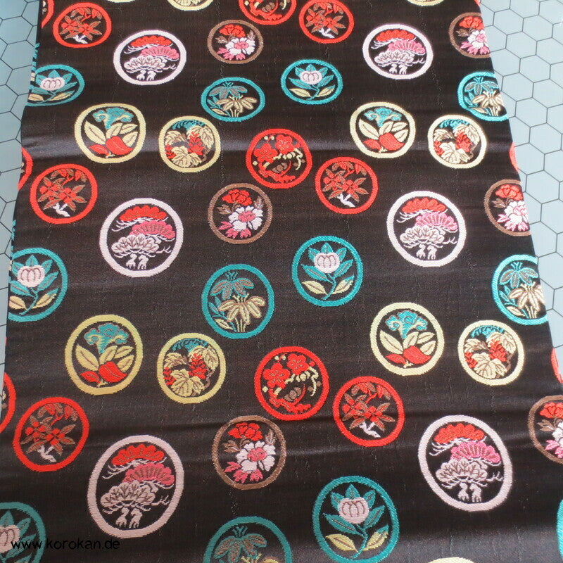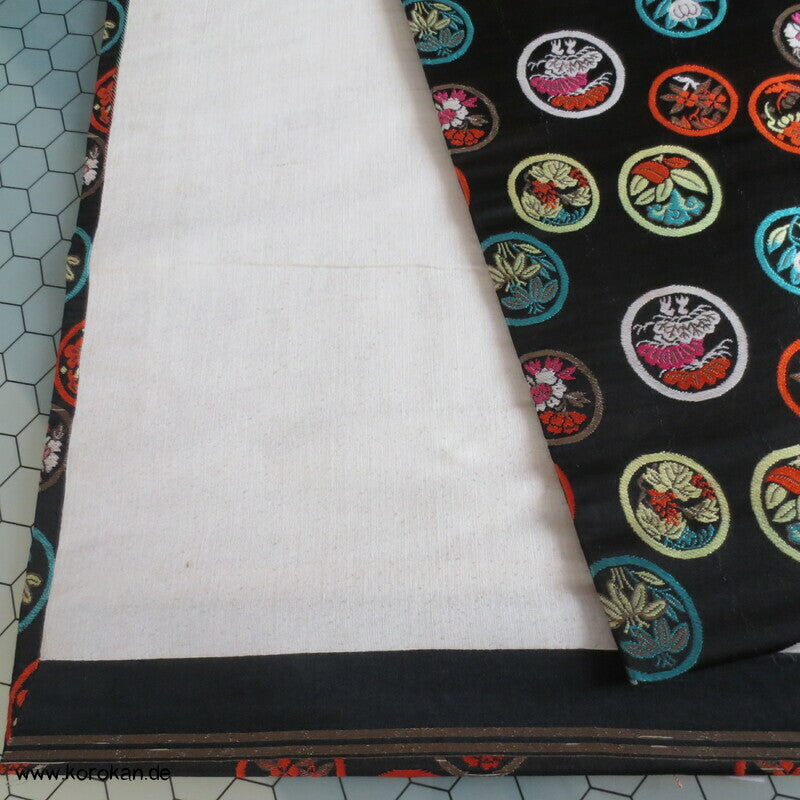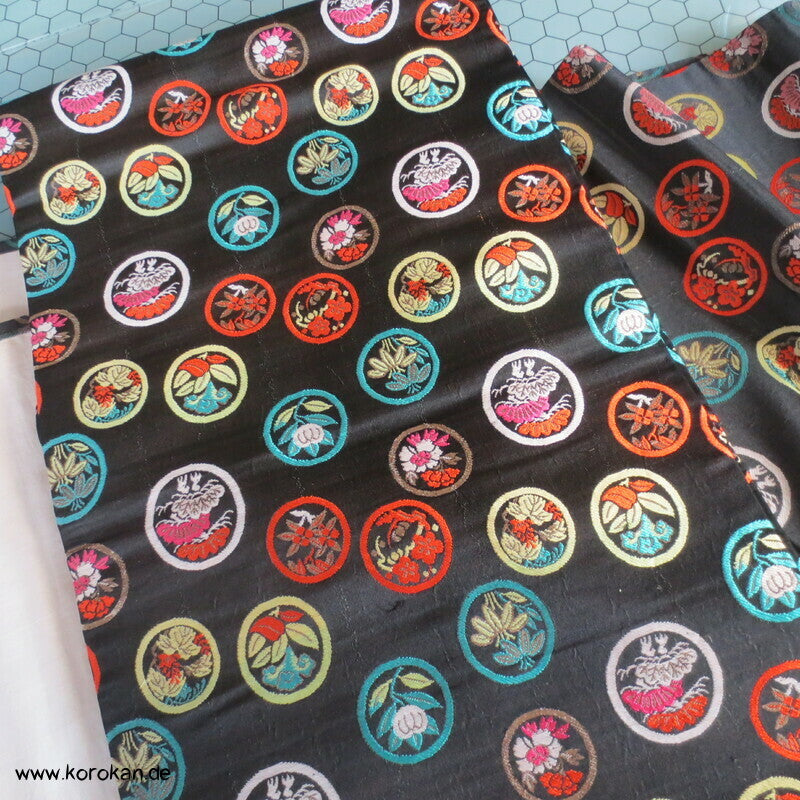 bunte Blüten Mon auf schwarzem Grund Fukuro Obi