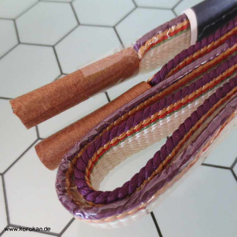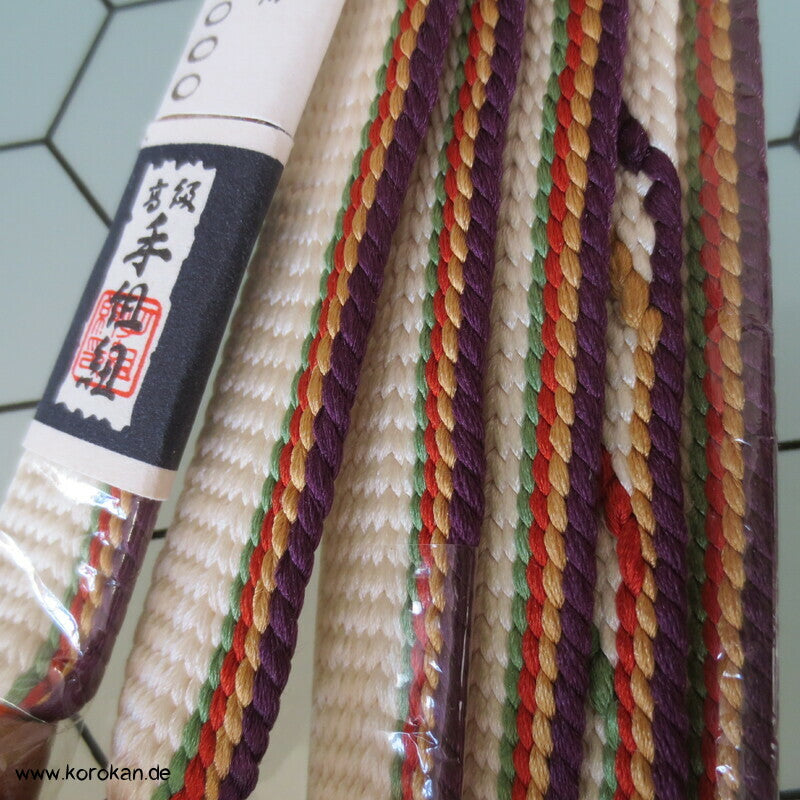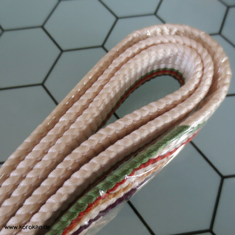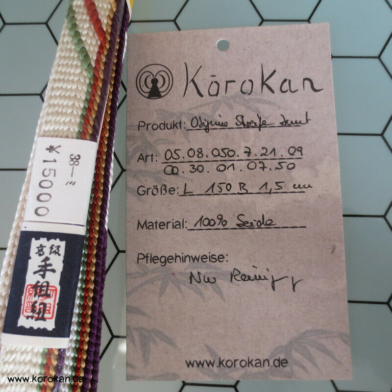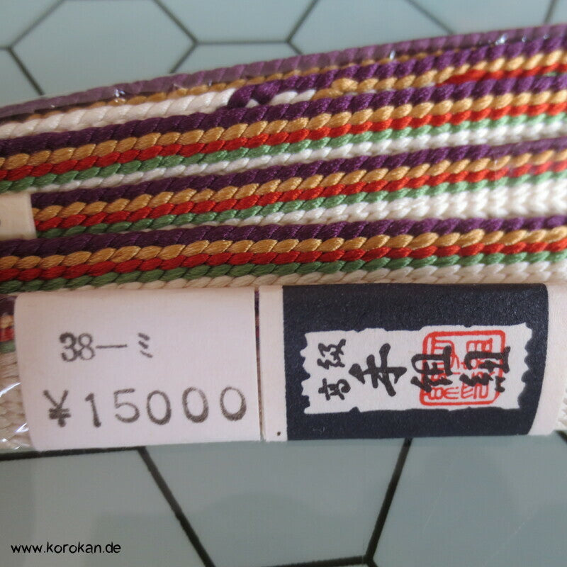 Vintage unbenutzter originalverpackter Obijime, Seide, hell mit bunten Streifenabschnitten