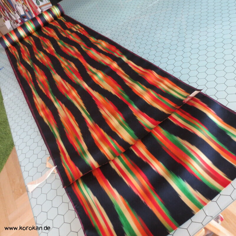 Vintage unbenutzte Regenmantel Damast Satinstreifen Tatewaku Seiden Stoffrolle = Tanmono mit Stempeln und Etiketten.