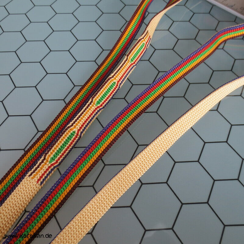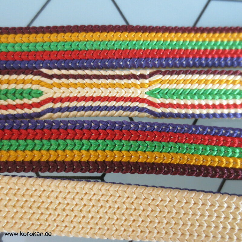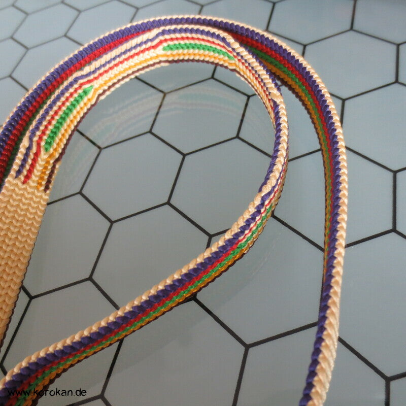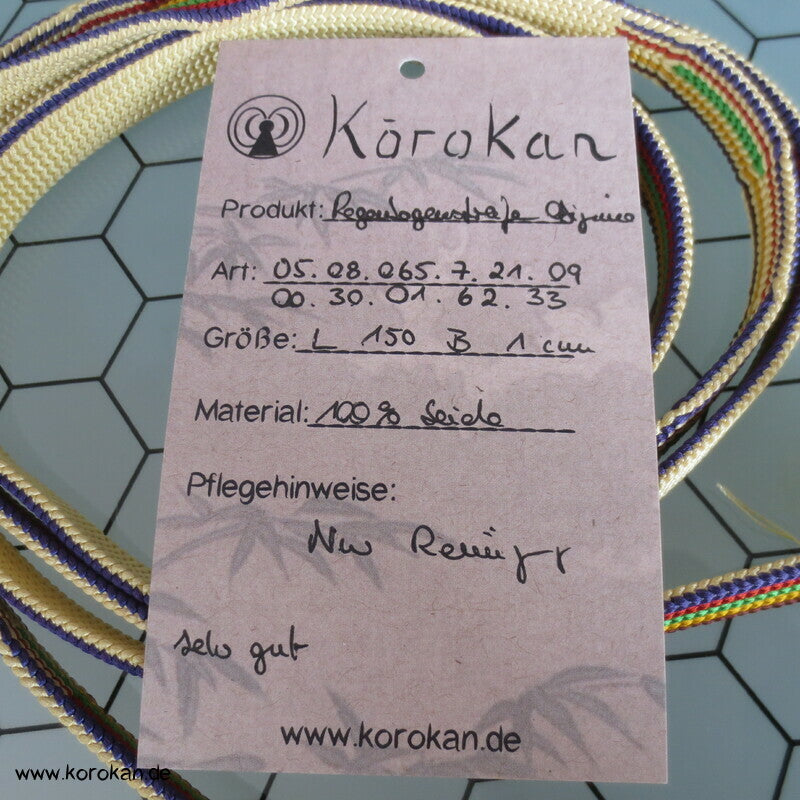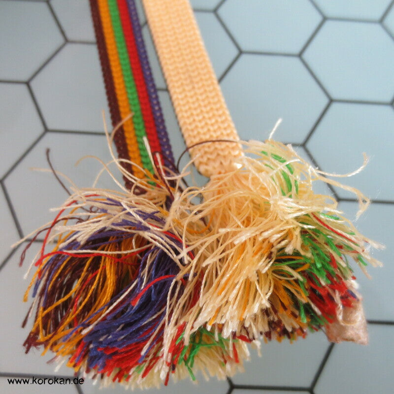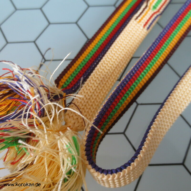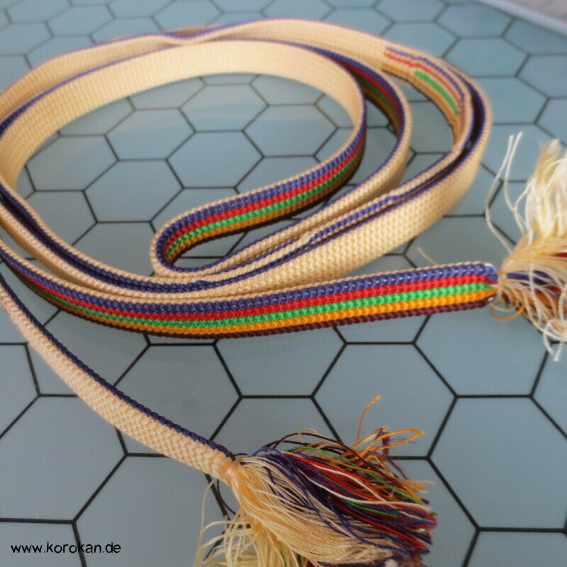 Vintage Obijime, Seide, hellgelb mit bunten Streifenabschnitten