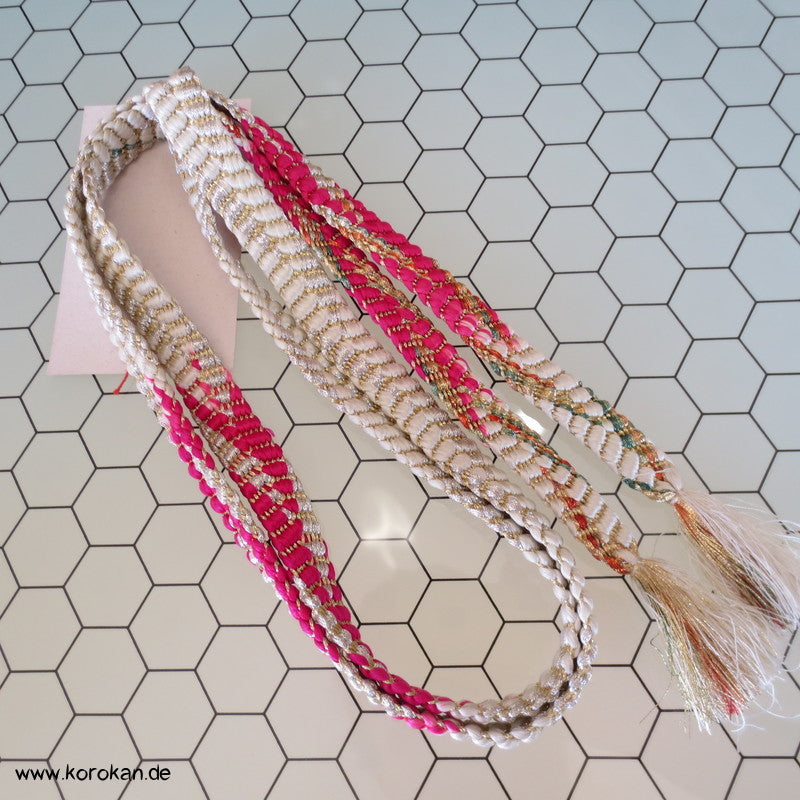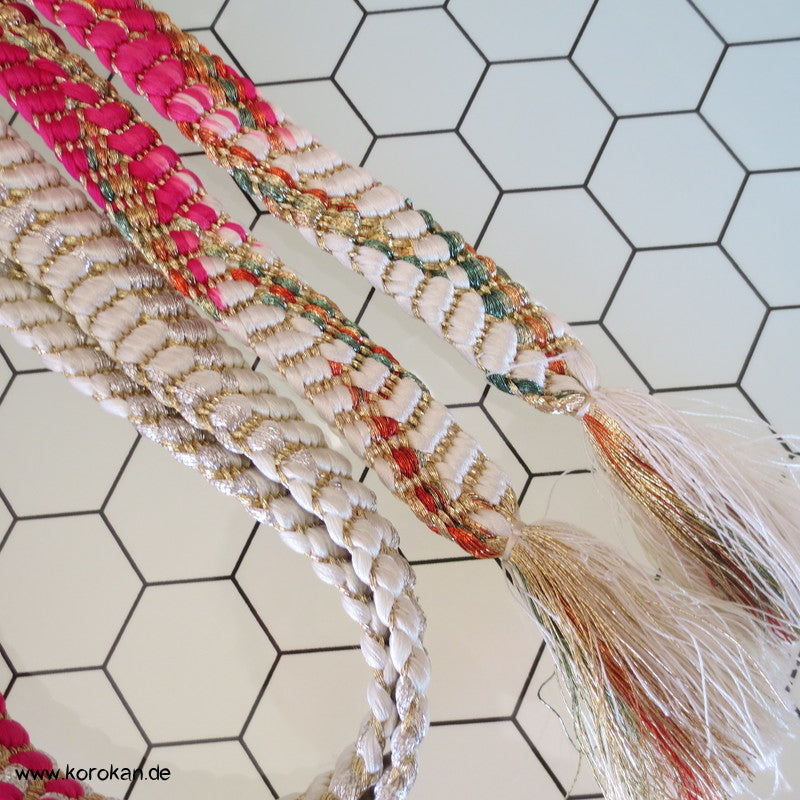 flacher Obijime mit Farbverlauf in pink weiß mit buntschillerndem Glitzer.