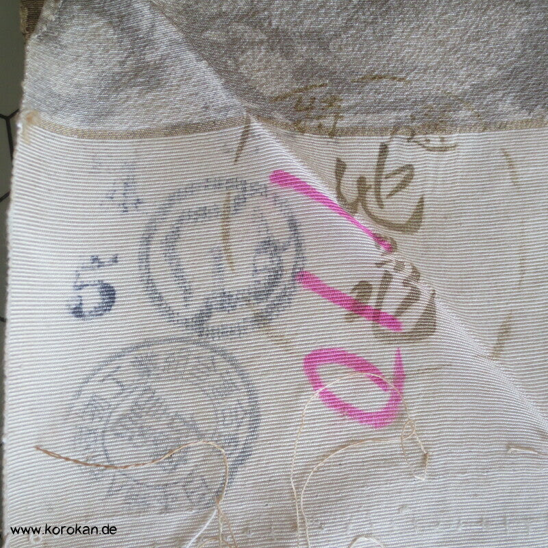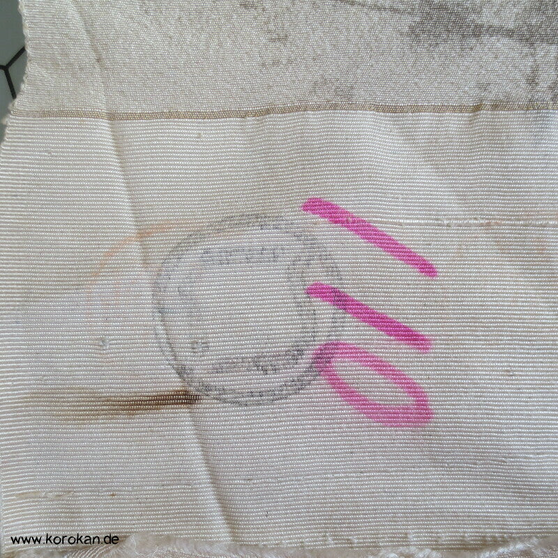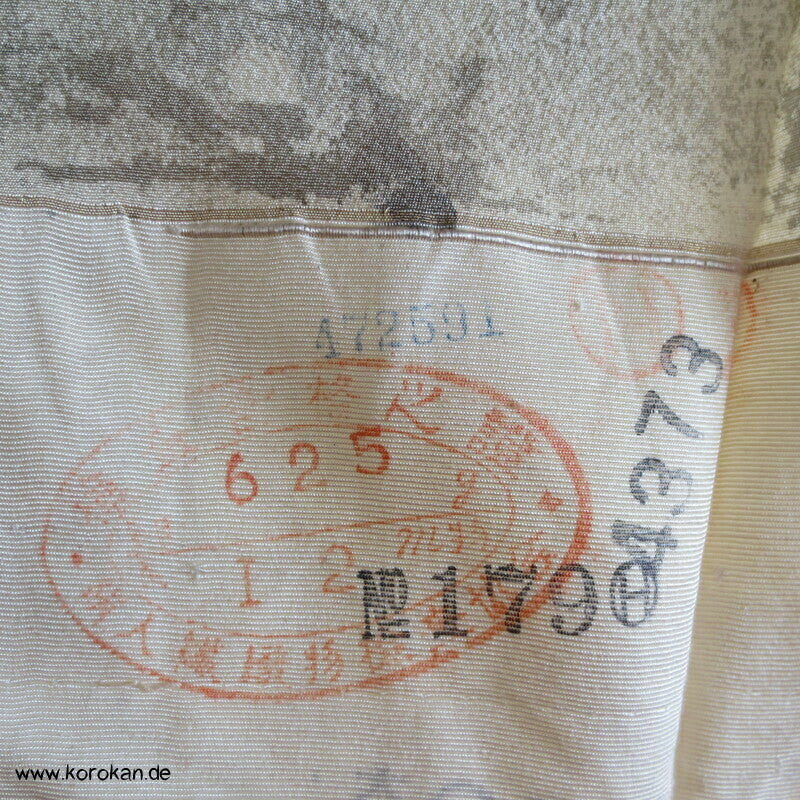 Vintage unbenutzte Tanmono Stoffrolle Seidencrepe mit abstraktem grau beigen Camouflage Druck auf einem kieseltaupe