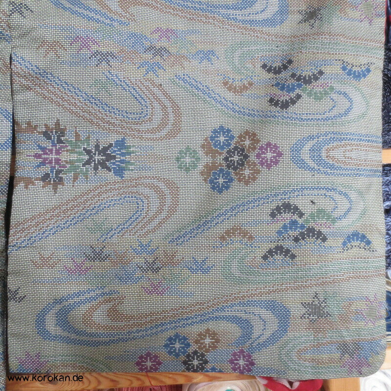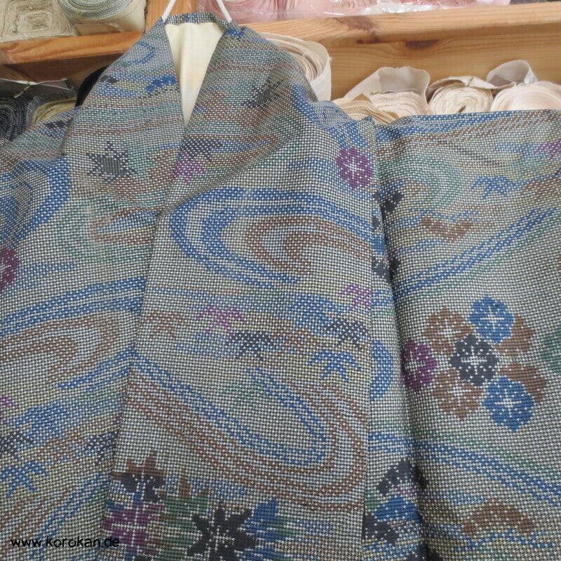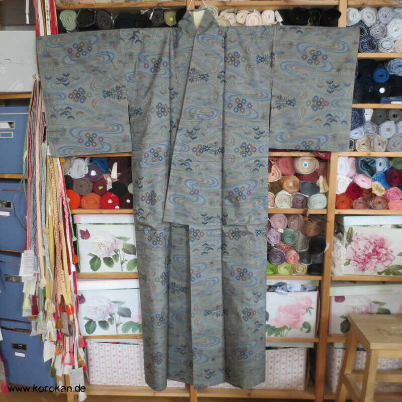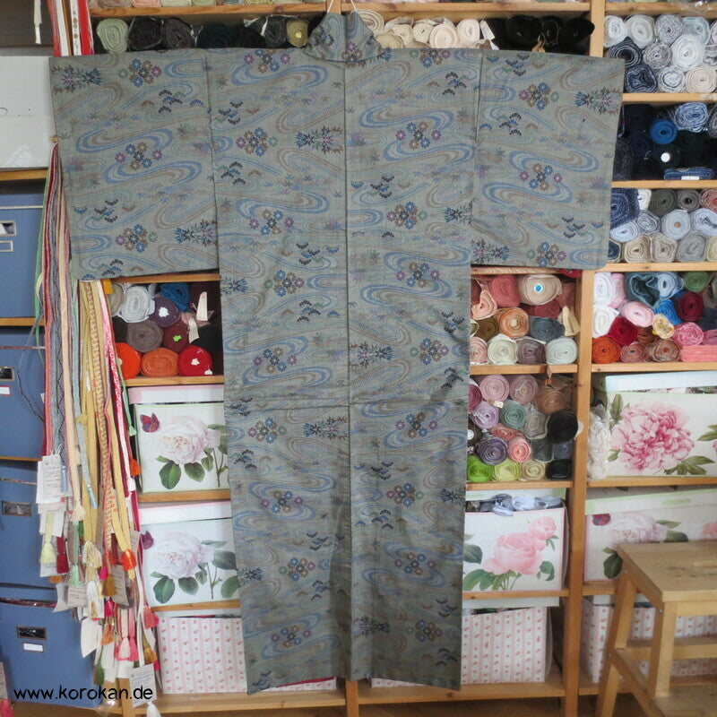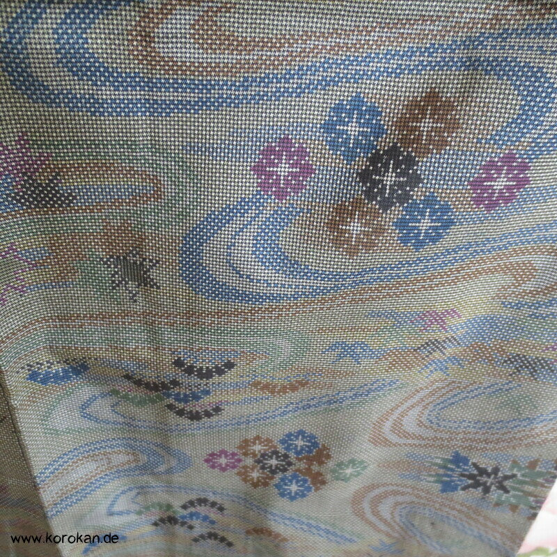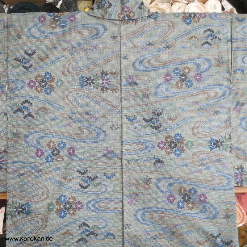 japanischer Chrysanthemen Fluss Kasuri Tsumugi Seiden Kimono