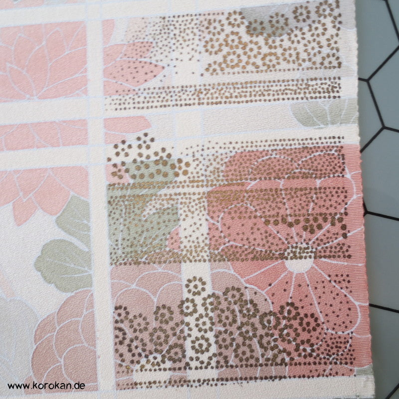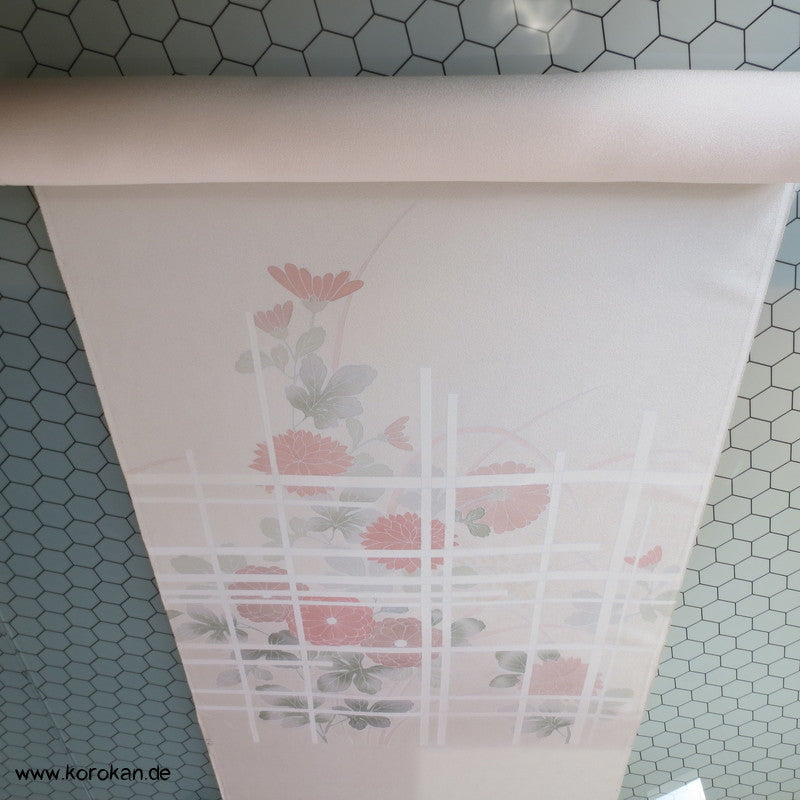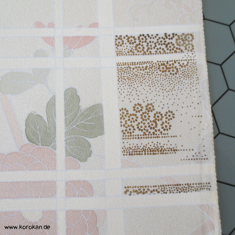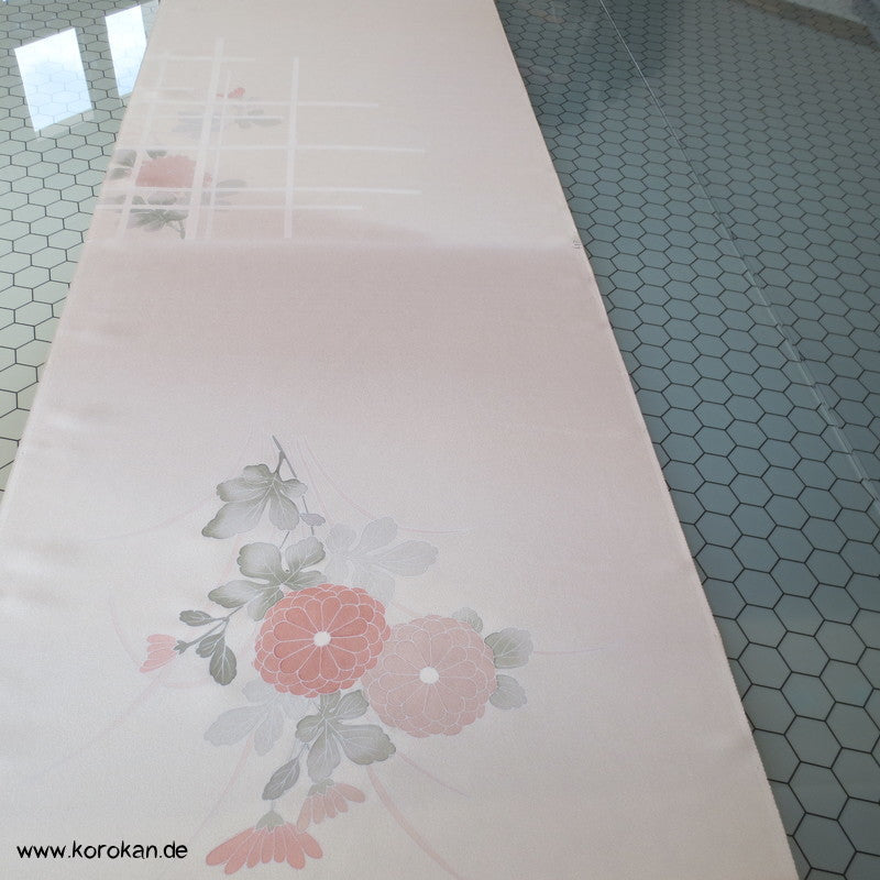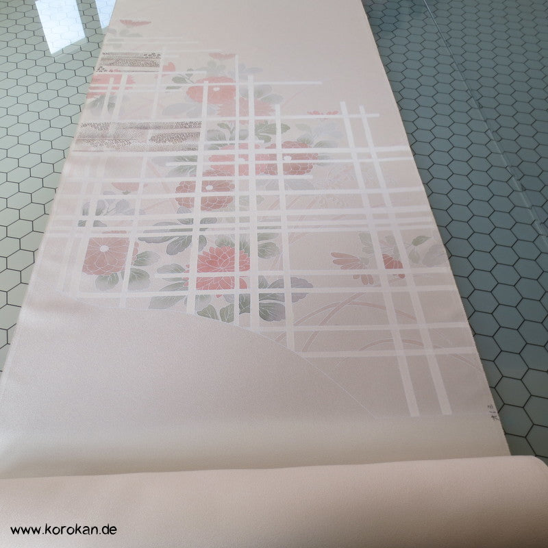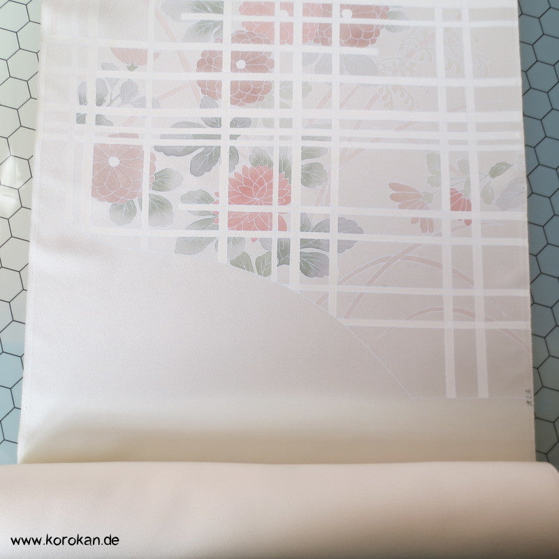 Chrysanthemen hinter Gitter Tanmono Kimono Seiden Crepesatin