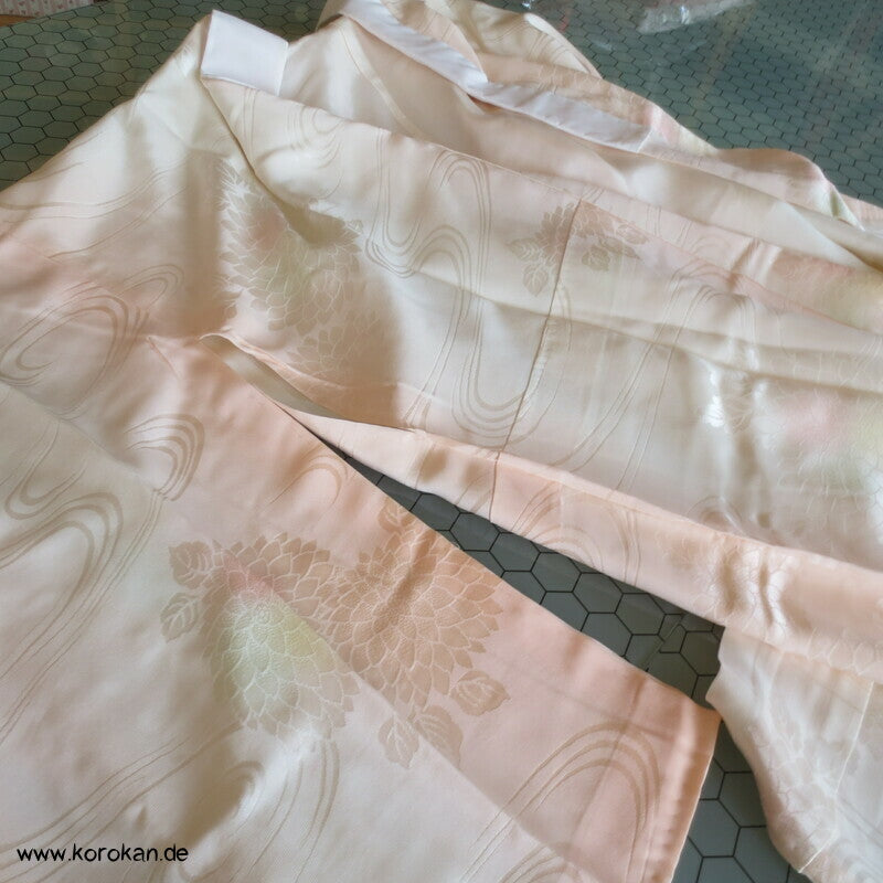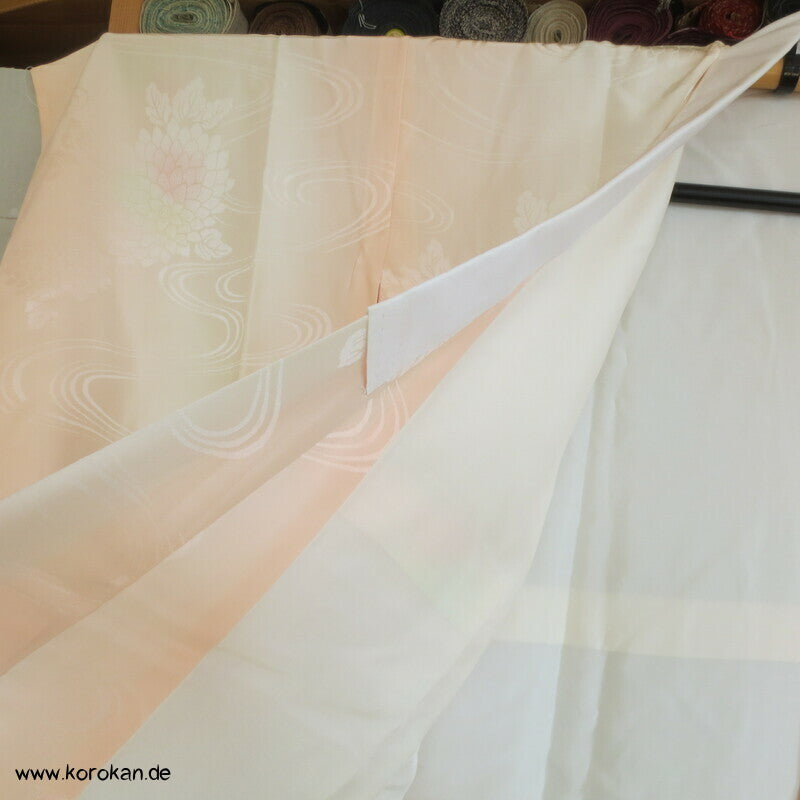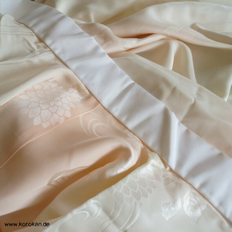 Vintage Juban Unter Kimono Blüten Seidendamast mit Bokashi Verlauf, Han Eri Seidenrips