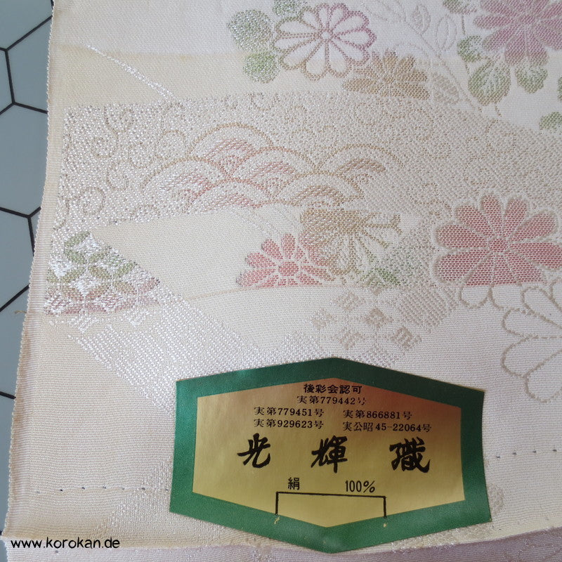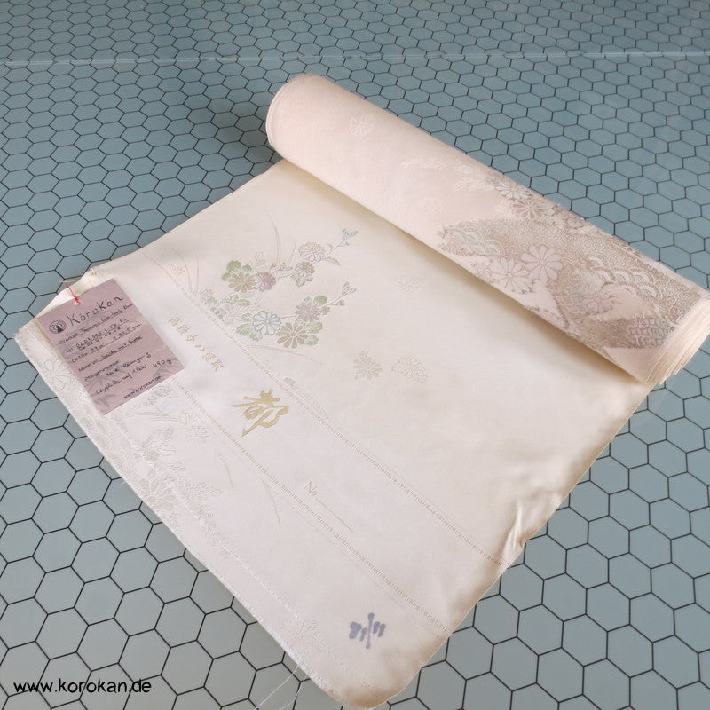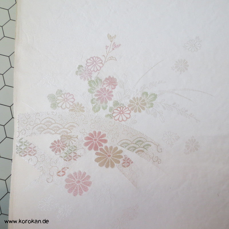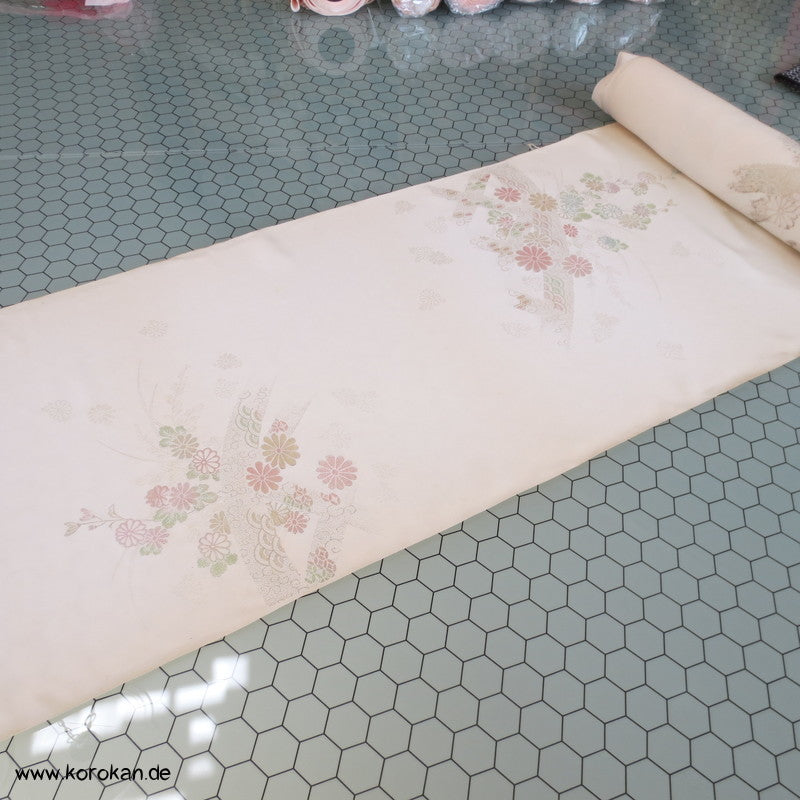Vintage unbenutzte Kimono Stoffrolle Tanmono Seiden Brokat Jacquard mit Blüten